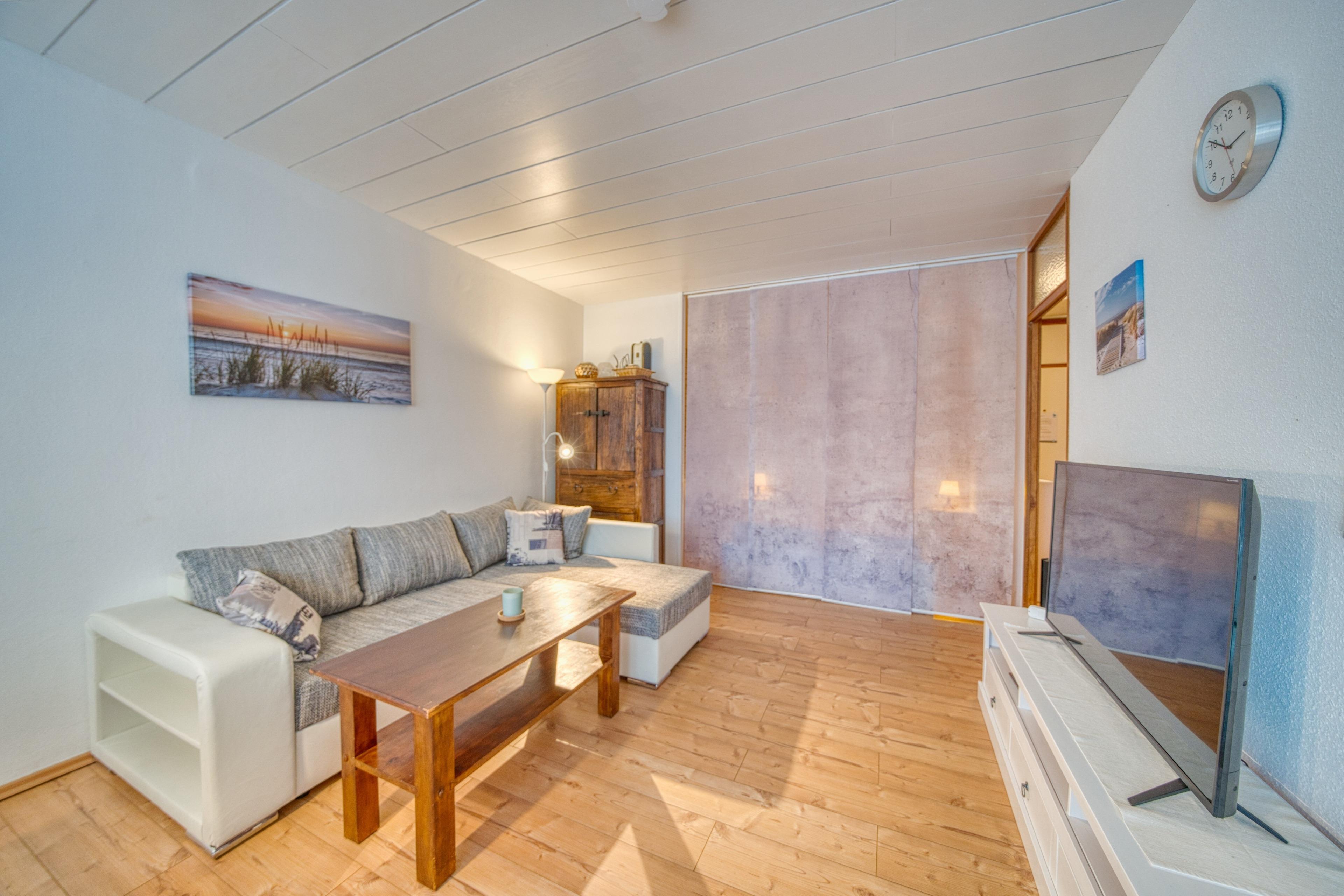 Gemütliche 1-Zimmer-Wohnung mit Südbalkon und seitlichem Binnenseeblick. 45?m² Wohnfläche für bis zu 4 Personen – ideal für Paare, Familien oder kleine Gruppen. Wohn-/Essbereich mit Flachbild-TV und Radio, Schlafbereich mit Doppelbett (140 x 200?cm) sowie Schlafcouch im Wohnzimmer. Komplett ausgestattete Küche mit Geschirrspüler, Waschmaschine, Mikrowelle, Kühlschrank, 4-Platten-Cerankochfeld und Mini-Backofen. Bad mit Dusche und WC. Kostenloses WLAN inklusive. Nichtraucherwohnung, keine Haustiere. Zentrale Lage im Ferienpark: ca. 300?m zum Ostseestrand, Promenade, Seebrücke, Aktiv-Hus, Restaurants, Bäcker und Einkaufsmöglichkeiten fußläufig erreichbar.