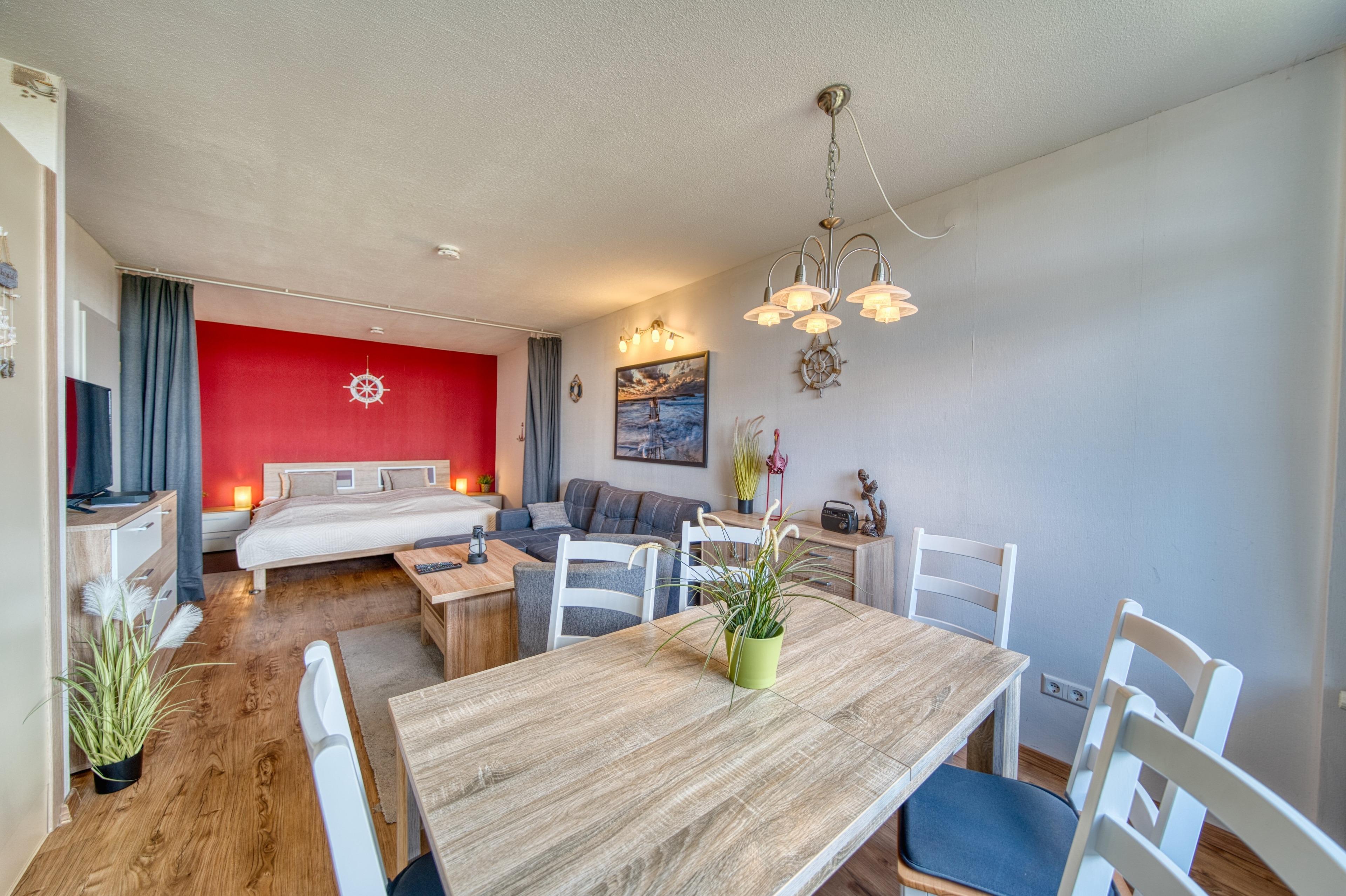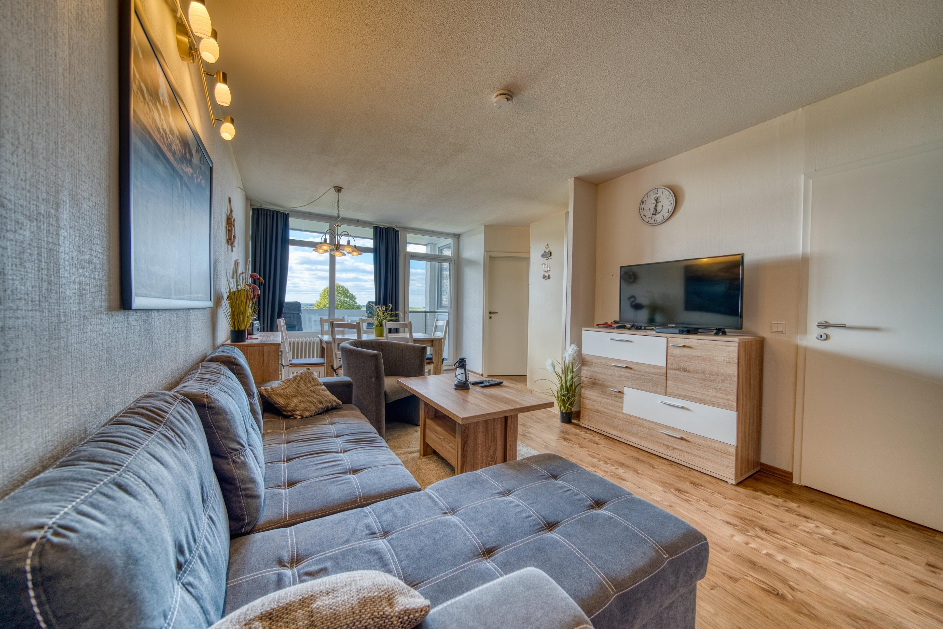 Großzügige Wohnung für bis zu 4 Personen, ca. 45?m², mit Balkon und Blick ins Grüne. Wohn-Schlafbereich mit Doppelbett und Schlafsofa, separates Schlafzimmer mit Etagenbett und TV, Vinylboden, Flachbild-TV mit Blu-ray-Player. Küche mit Ceranherd, Backofen, Kühlschrank mit Gefrierfach, Mikrowelle, Geschirrspüler, Kaffeemaschine, Toaster und Wasserkocher. Badezimmer mit Duschkabine und Handtuchtrockner. WLAN inklusive. Nichtraucherwohnung, keine Haustiere. Fahrstuhl vorhanden, Parkplatz hinter dem Ferienpark, Fahrradräume verfügbar. Ca. 300?m bis zum Strand. Ideal für Familien oder kleine Gruppen.