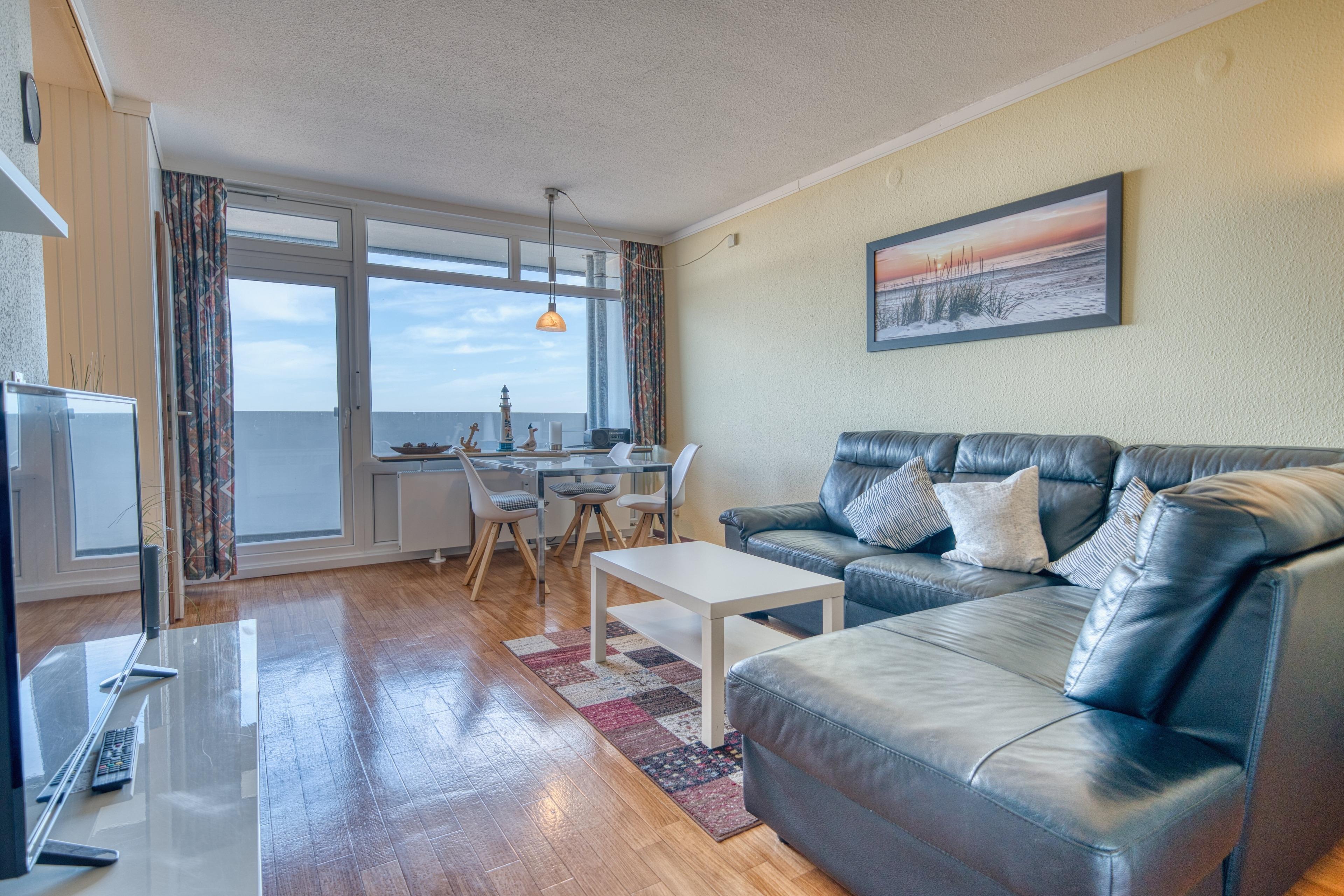 Der kombinierte Wohn-/Schlafraum ist ausgestattet mit Doppelbett, Ledersofa und Essplatz am Fenster. Ein separates Kinderzimmer mit Einzelbett, eine komplett ausgestattete Küche sowie Bad mit Dusche und WC sorgen für Komfort. Kostenloses WLAN ist vorhanden. Nichtraucherwohnung, keine Haustiere. Fahrstuhl, kostenfreier Parkplatz hinter dem Ferienpark. Der Strand liegt ca. 300?m entfernt, das Aktiv-Hus mit Schwimmbad, Sauna und Wellness ist fußläufig erreichbar.