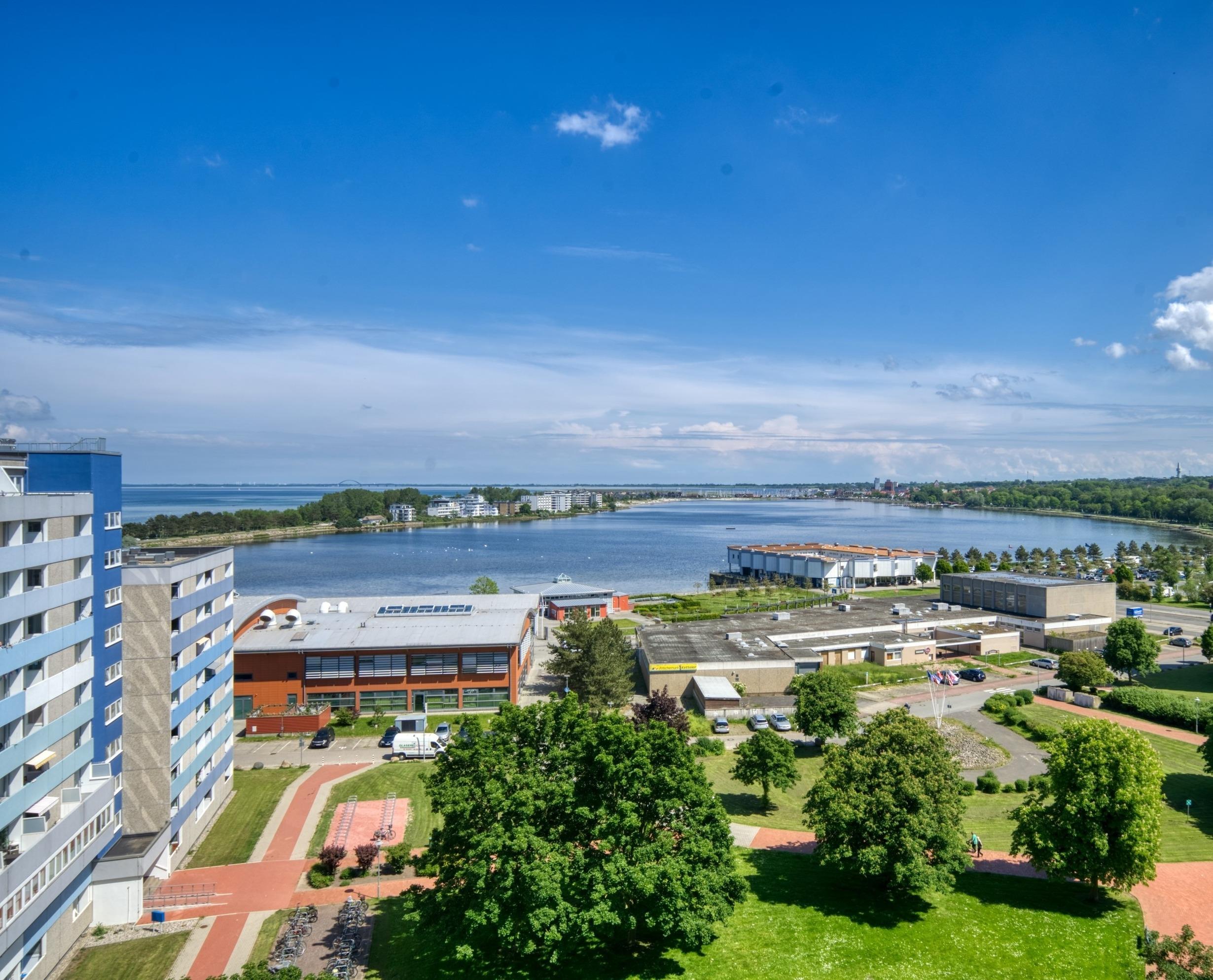 Erleben Sie entspannte Urlaubstage in dieser einladenden 45 m² großen Ferienwohnung im 10. Stock des Hauses E im Ferienpark Heiligenhafen. Der Balkon mit herrlichem Ausblick auf die Ostsee und den Binnensee lädt zu erholsamen Stunden bei frischer Meeresluft ein – der perfekte Ort für Familienferien!