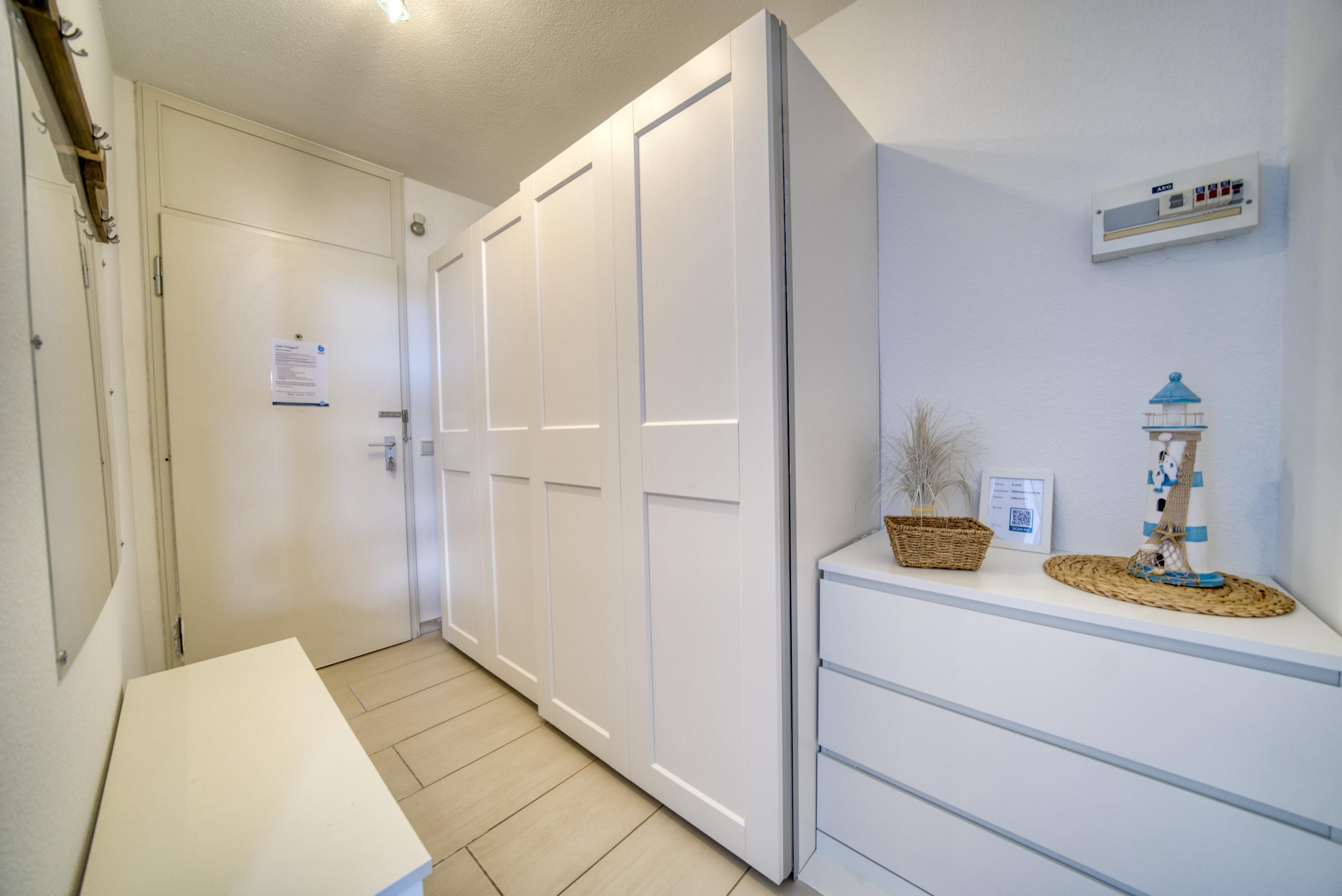 Wohn-/Schlafraum mit Doppelbett, separates Schlafzimmer mit Etagenbett. Gemütlicher Essbereich, Laminatboden, Balkon mit Weitblick. Küche mit Ceranherd, Kühlschrank mit Gefrierfach, Mikrowelle, Toaster, Filterkaffeemaschine und Wasserkocher. Bad mit Duschkabine und Handtuchtrockner. Bonus: WLAN und Eintritt „Schatzinsel“. Nichtraucher, keine Haustiere, Fahrstuhl, Fahrradräume, Parkplatz vorhanden. Strand ca. 300?m. Ferienpark mit Schwimmbad, Sauna, Wellness, Geschäften und Kinderspielwelt.