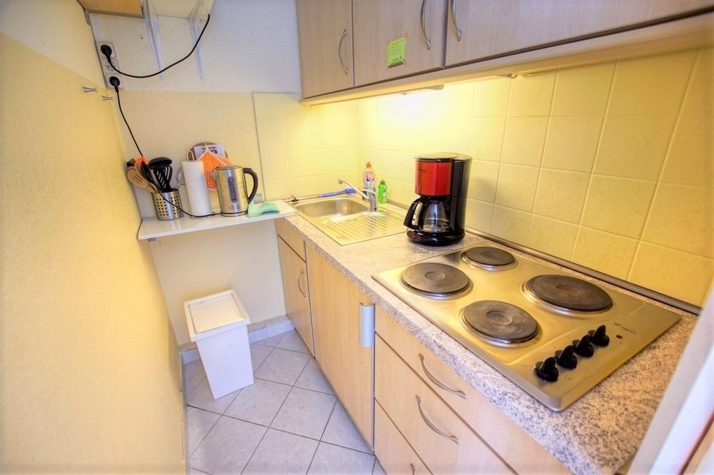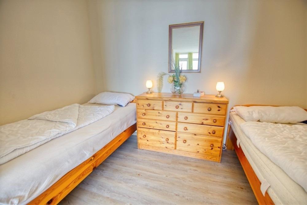 Wohnfläche 45?m², Wohn-Esszimmer mit Sofa, Flachbild-TV, Radio und Einzelbetten, separates Kinderzimmer mit Etagenbett. Küche komplett ausgestattet mit Kühlschrank inkl. Gefrierfach und 4-Platten-Herd. Bad mit Dusche und WC. Balkon mit herrlicher Aussicht. WLAN inklusive. Nichtraucherwohnung, keine Haustiere, max. 4 Personen. Fahrstuhl und Fahrradräume vorhanden, Strand ca. 300?m entfernt, kostenloser Parkplatz.