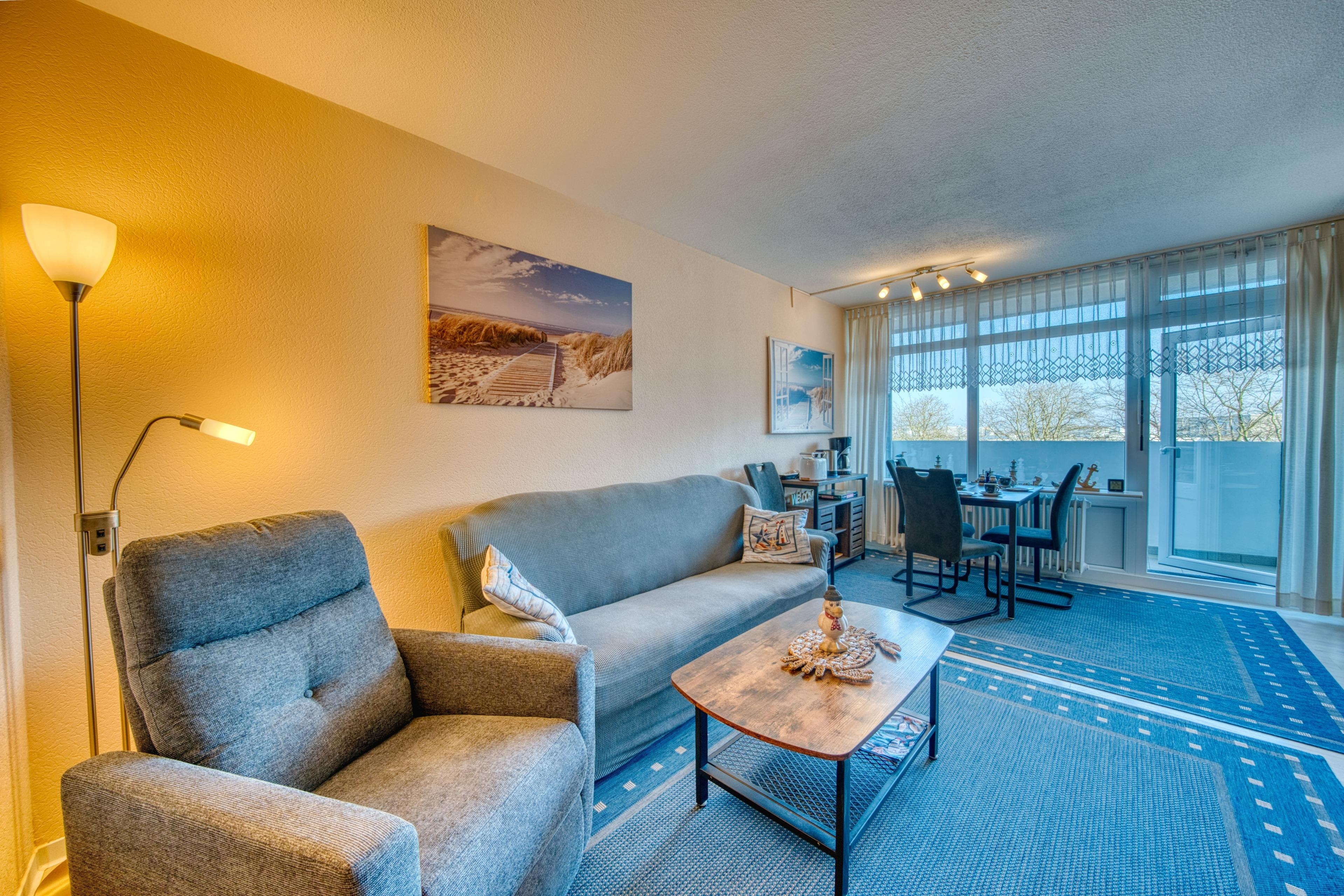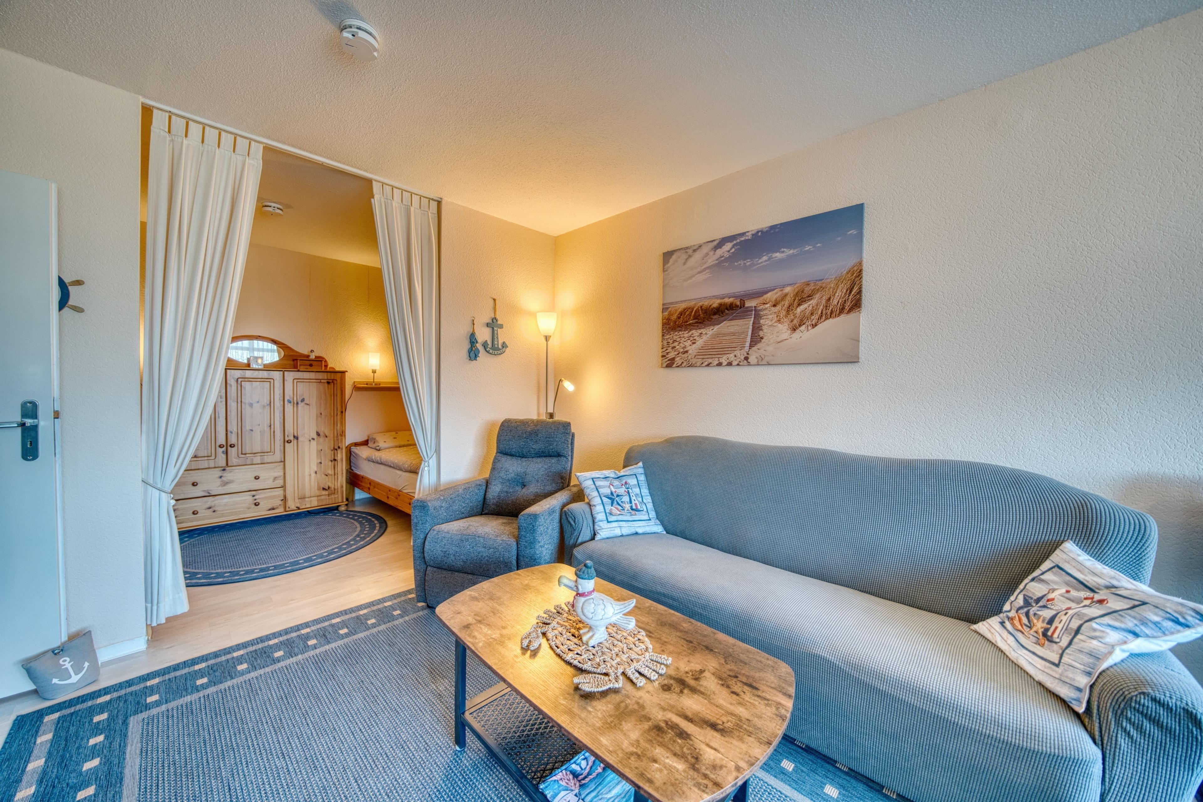 Die 45?m² Wohnung bietet Wohn-/Esszimmer mit Flachbild-TV, DVD-Player und Radio mit CD/Bluetooth, Elternschlafbereich mit zwei Einzelbetten, kleines Zimmer mit Einzelbett, Küche mit 2-Plattenherd, Kühlschrank mit Gefrierfach, Mikrowelle, Mini-Backofen, Kaffeemaschine, Toaster und Wasserkocher sowie Bad mit WC und Dusche. WLAN inklusive. Nichtraucher, keine Haustiere, Fahrstuhl, Fahrradräume, Parkplatz hinter dem Ferienpark. Ca. 300?m zum Strand. Geeignet für max. 3 Personen. Ferienpark mit Aktiv-Hus, Schwimmbad, Sauna, Wellness und Kinderspielwelt.