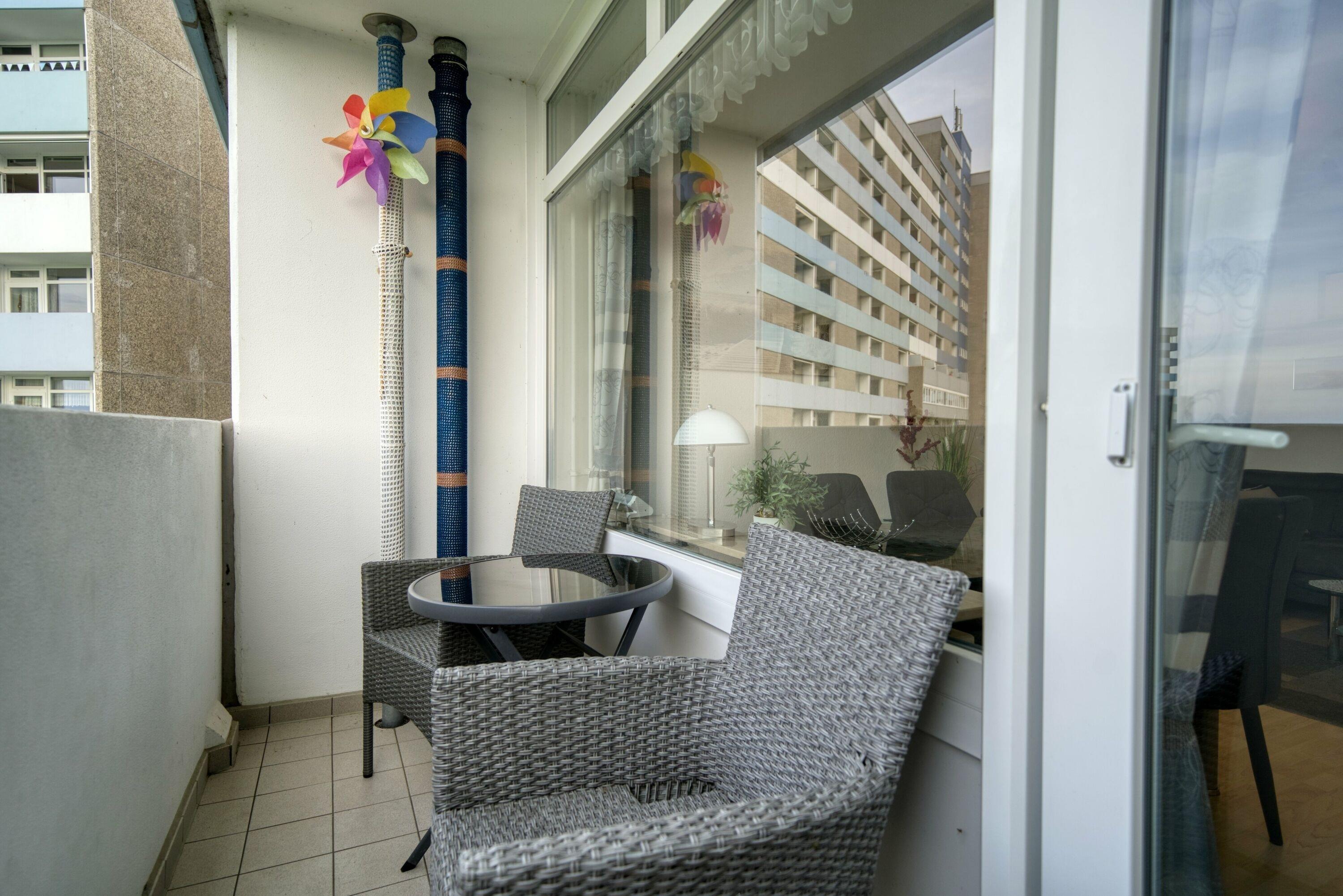 Die Wohnung liegt im Haus I Ferienpark, in der 4. Etage, mit Balkon zur Westseite, der einen herrlichen Ostseeblick sowie Sonne vom Nachmittag bis in die Abendstunden bietet. Wohnfläche 45?m², Elternschlafbereich mit Doppelbett (abgetrennt durch Vorhang), Wohn-/Essbereich mit TV, Kinderzimmer mit Etagenbett. Küche mit Mikrowelle, Kühlschrank und 4-Plattenherd. Bad mit WC und Duschkabine. Balkon mit Westausrichtung. Bonus: Highspeed-WLAN, Kindersitzmodul, klappbarer Gepäcktransporter. Für max. 4 Personen, Nichtraucherwohnung, keine Haustiere. Strand ca. 300?m, Aktiv-Hus, Shops und Freizeitmöglichkeiten direkt im Ferienpark.
