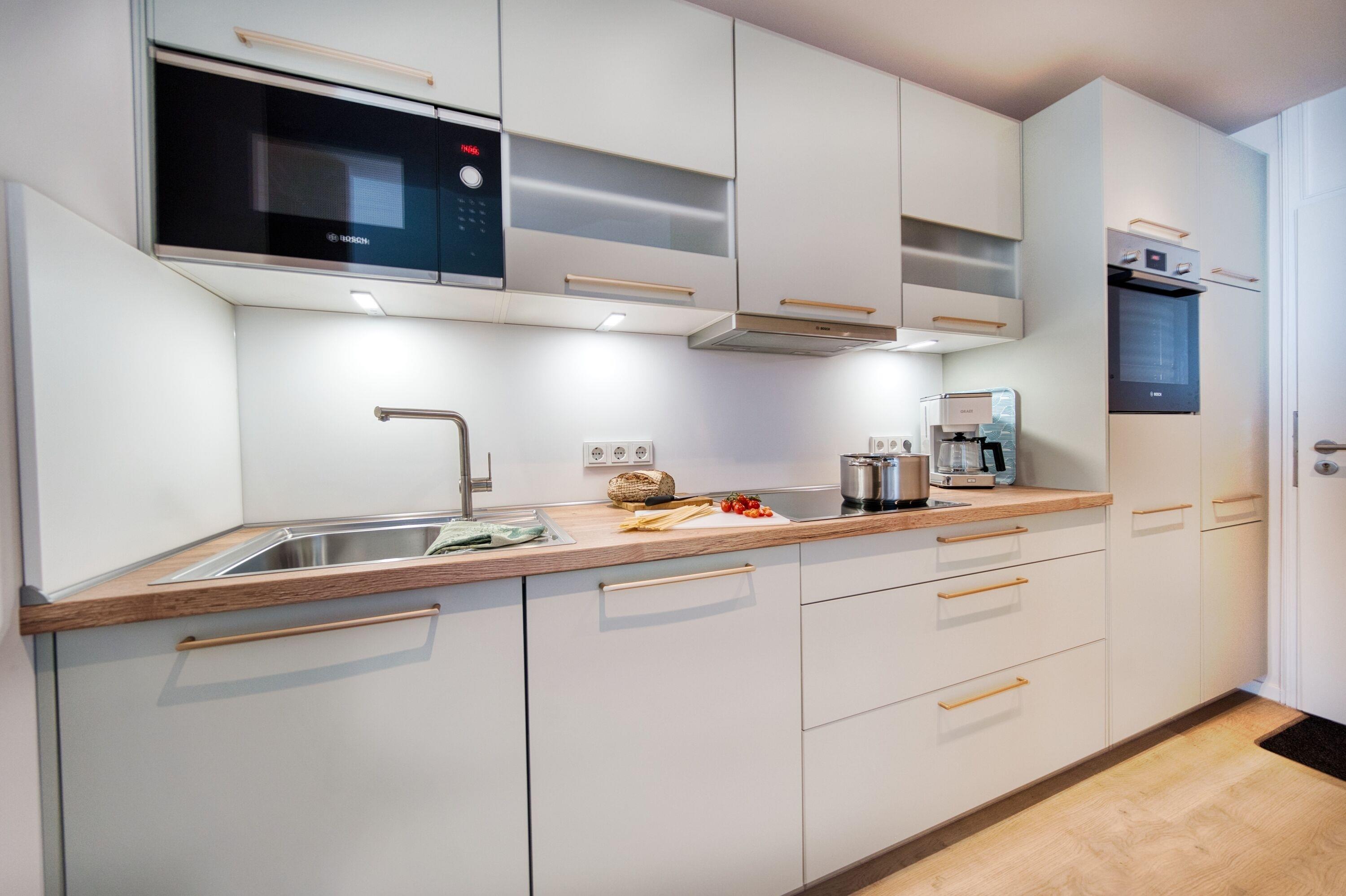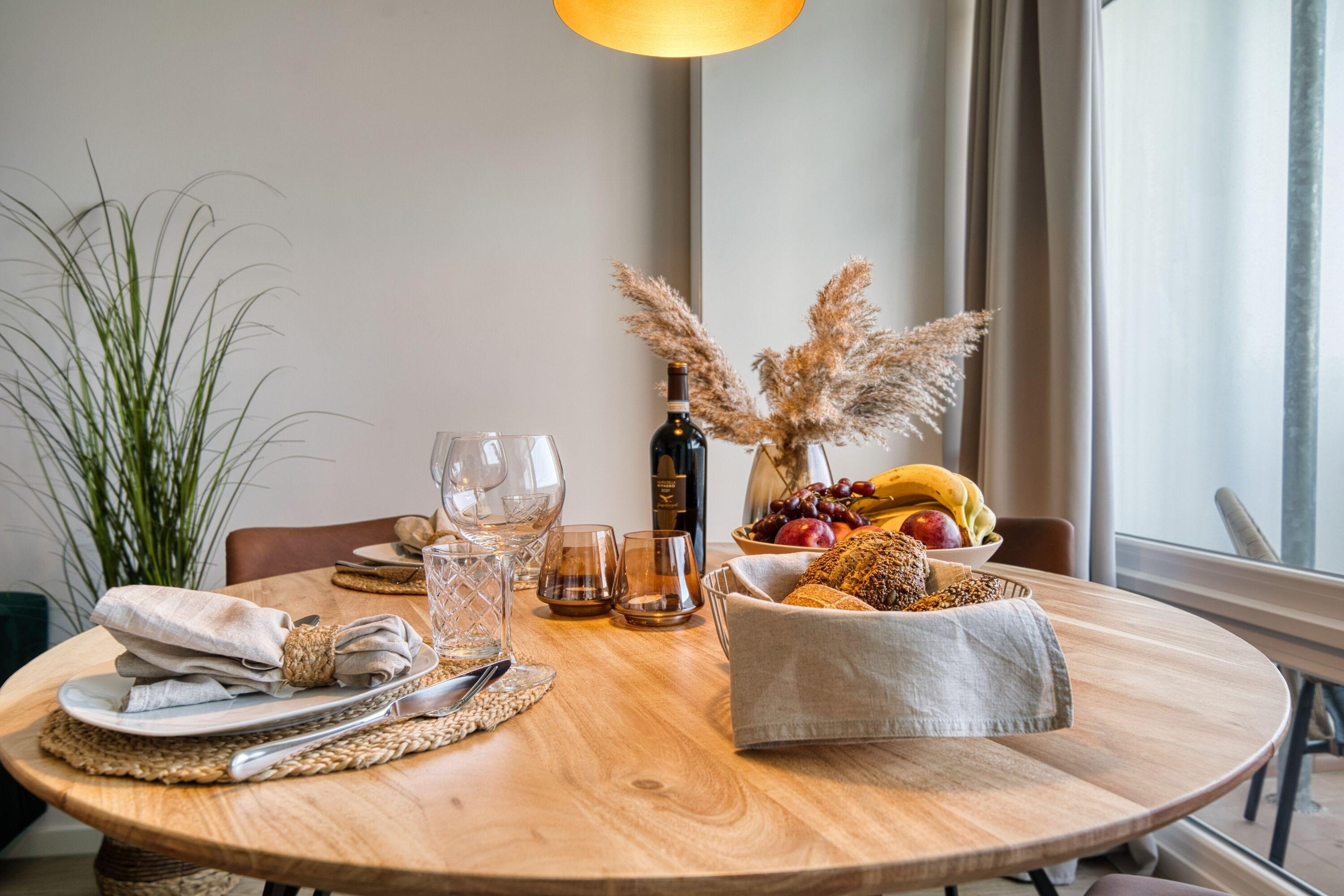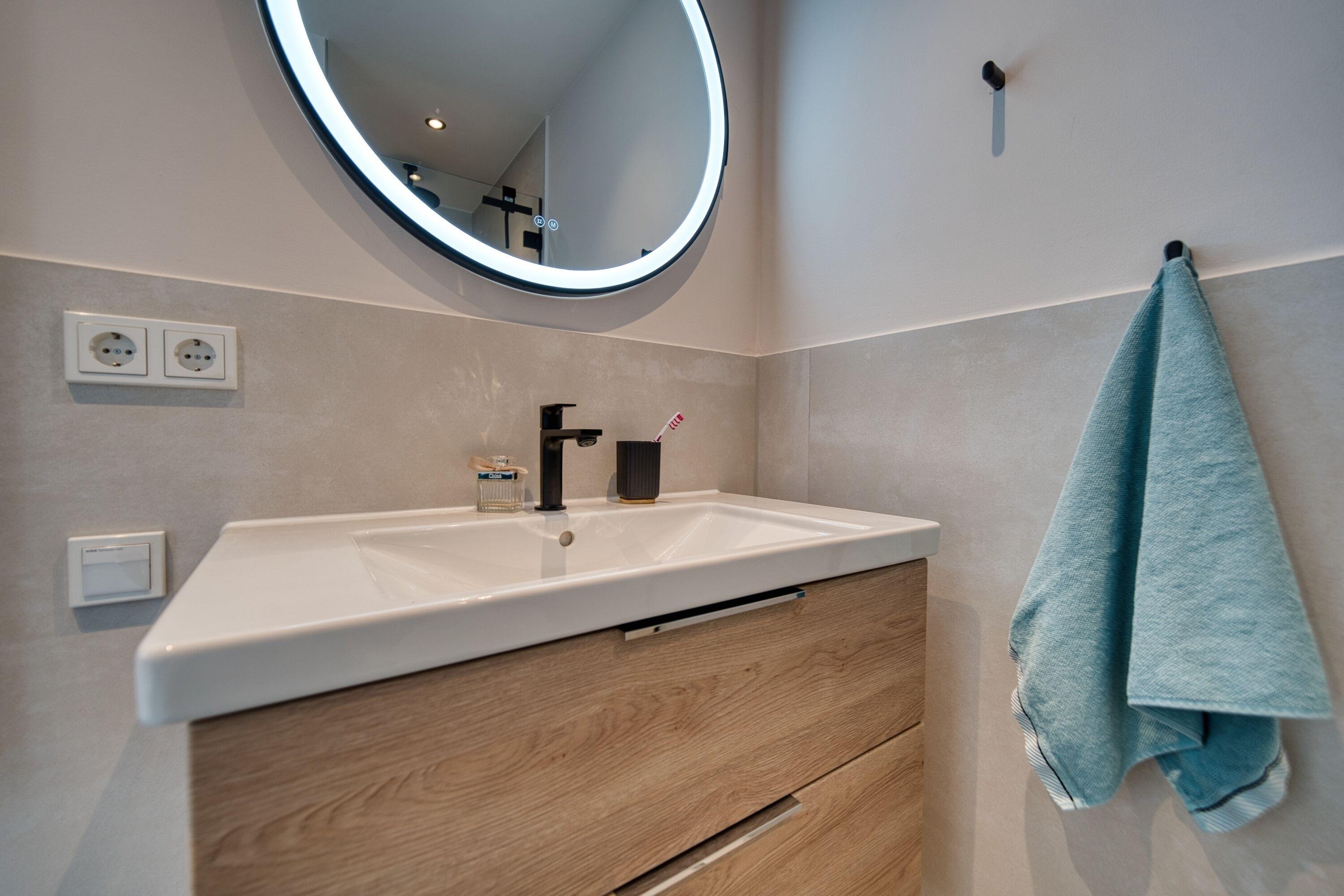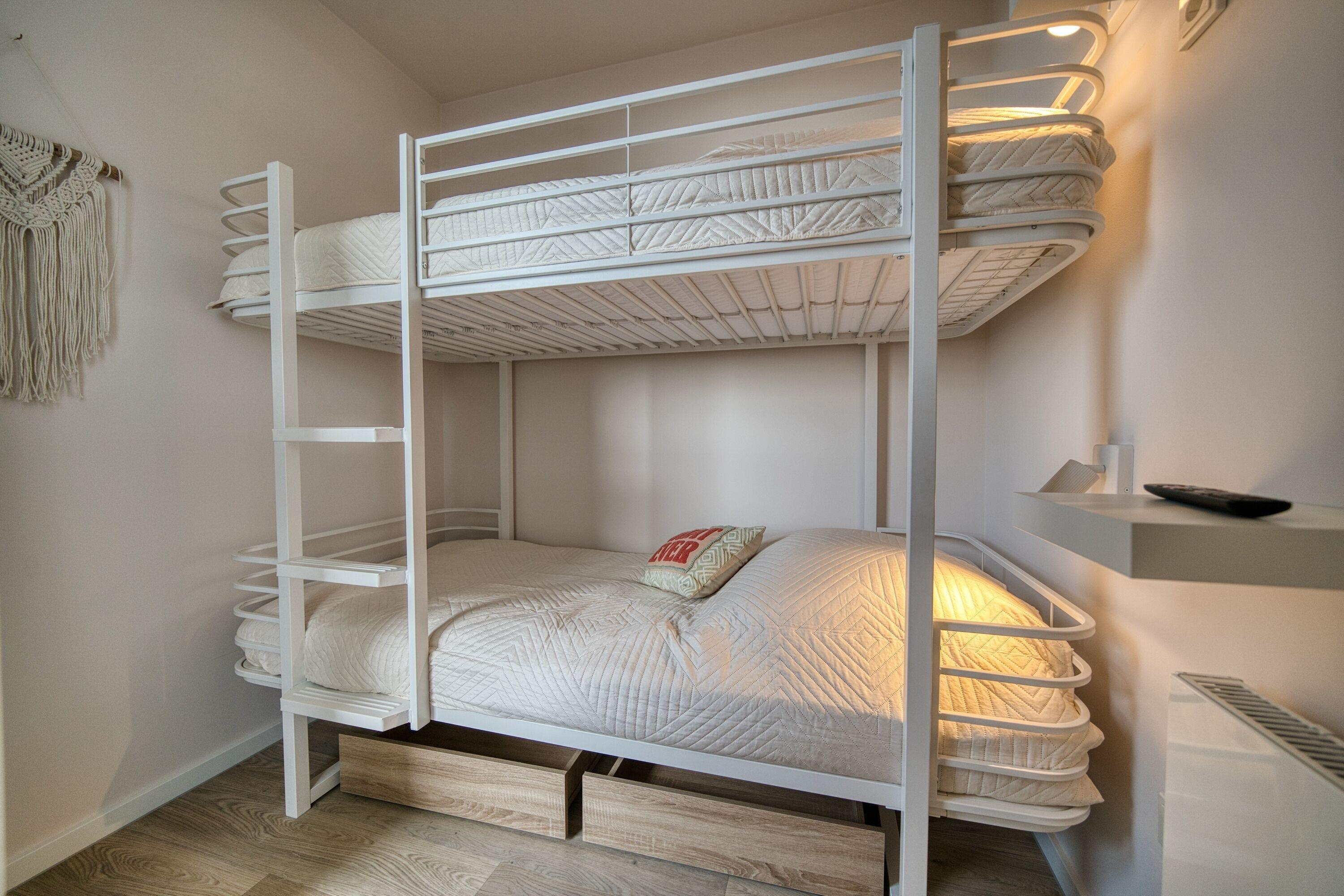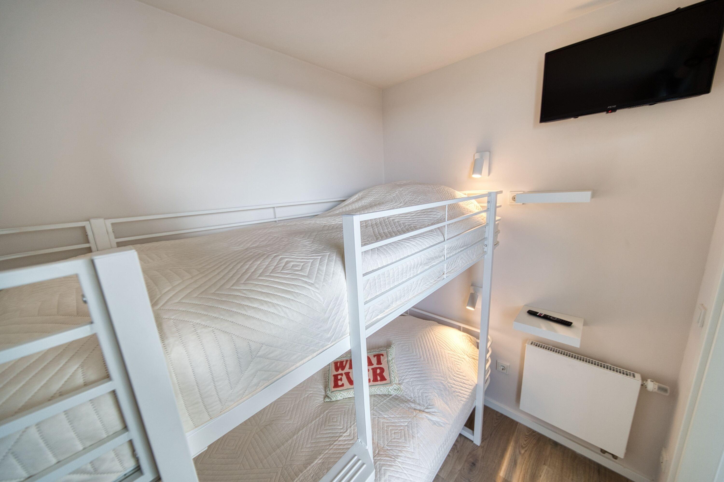 Die Wohnung verfügt über ein separates Schlafzimmer mit Doppelbett und Einbauschrank, Kinderzimmer mit Etagenbett und Stauraum, Wohnbereich mit Sofa und Smart-TV sowie zwei Smart-TVs insgesamt. Die Küche ist komplett ausgestattet mit Cerankochfeld, Backofen, Geschirrspüler, Kühlschrank mit Gefrierfach, Mikrowelle, Kaffeemaschine, Toaster und Wasserkocher. Modernes Bad mit ebenerdiger Dusche. Vinylfußboden, kostenloser Strandkorb in der Sommersaison, Netflix inklusive. Strand ca. 300?m, Aktiv-Hus, Shops und Freizeitangebote direkt im Ferienpark.