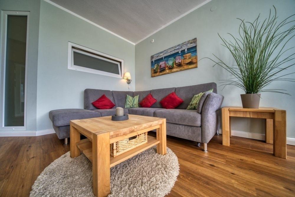 Die Wohnung bietet modernes Wohnzimmer mit Schlafsofa für 2, Flachbild-TV mit Bluetooth-Sounddeck, hochwertigem Vinylboden und dekorativer Einrichtung. Die Küche ist voll ausgestattet mit Induktionsherd, Backofen, Kaffeevollautomat, Mikrowelle, Kühlschrank mit Gefrierfach und Geschirrspüler. Bad mit Duschkabine, kostenloses WLAN, Nichtraucher, keine Haustiere, Fahrstuhl, Fahrradräume, Parkplatz am Ferienpark. Nur ca. 300?m bis zum Strand. Der Ferienpark bietet Aktiv-Hus mit Schwimmbad, Sauna, Wellness, Indoor-Spielwelt, Restaurants und Einkaufsmöglichkeiten.