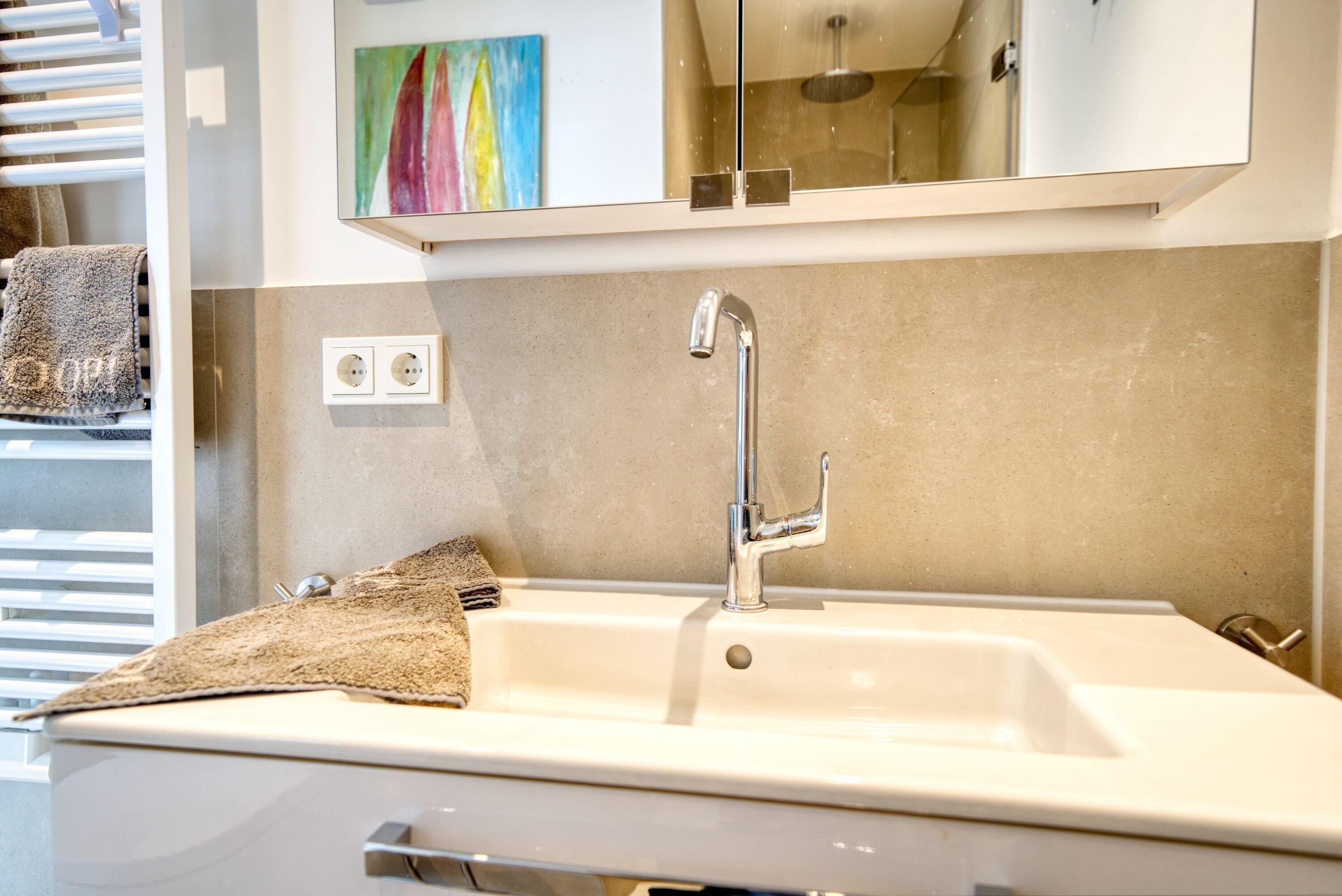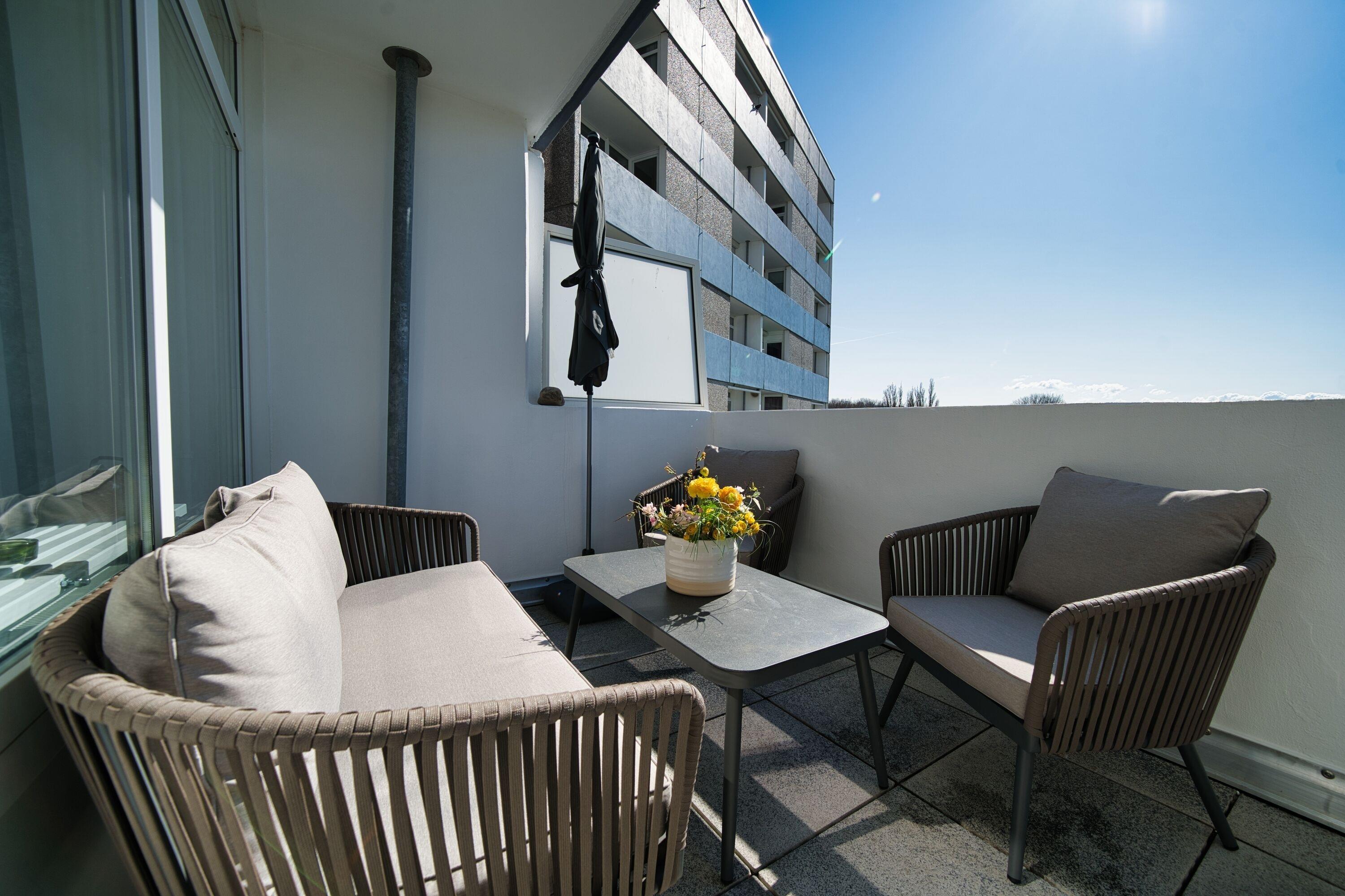 Die 45?m² Wohnung bietet Wohnzimmer mit Vinylboden, Ecksofa, Essbereich, Schlafcouch und Flachbild-TV, großen Süd-Balkon mit Lounge-Gruppe, separates Schlafzimmer mit Doppelbett und TV, Kinderzimmer mit Einzelbett/TV, hochwertige Küche (Ceranherd, Backofen, Mikrowelle, Spülmaschine, Kühlschrank/Gefrierfach, Kaffeemaschine, Wasserkocher, Toaster) und Bad mit Regendusche und Handtuchtrockner. Bonus: WLAN. Nichtraucher, keine Haustiere, Fahrstuhl, abschließbare Fahrradräume, kostenfreier Parkplatz. Strand ca. 300?m entfernt.