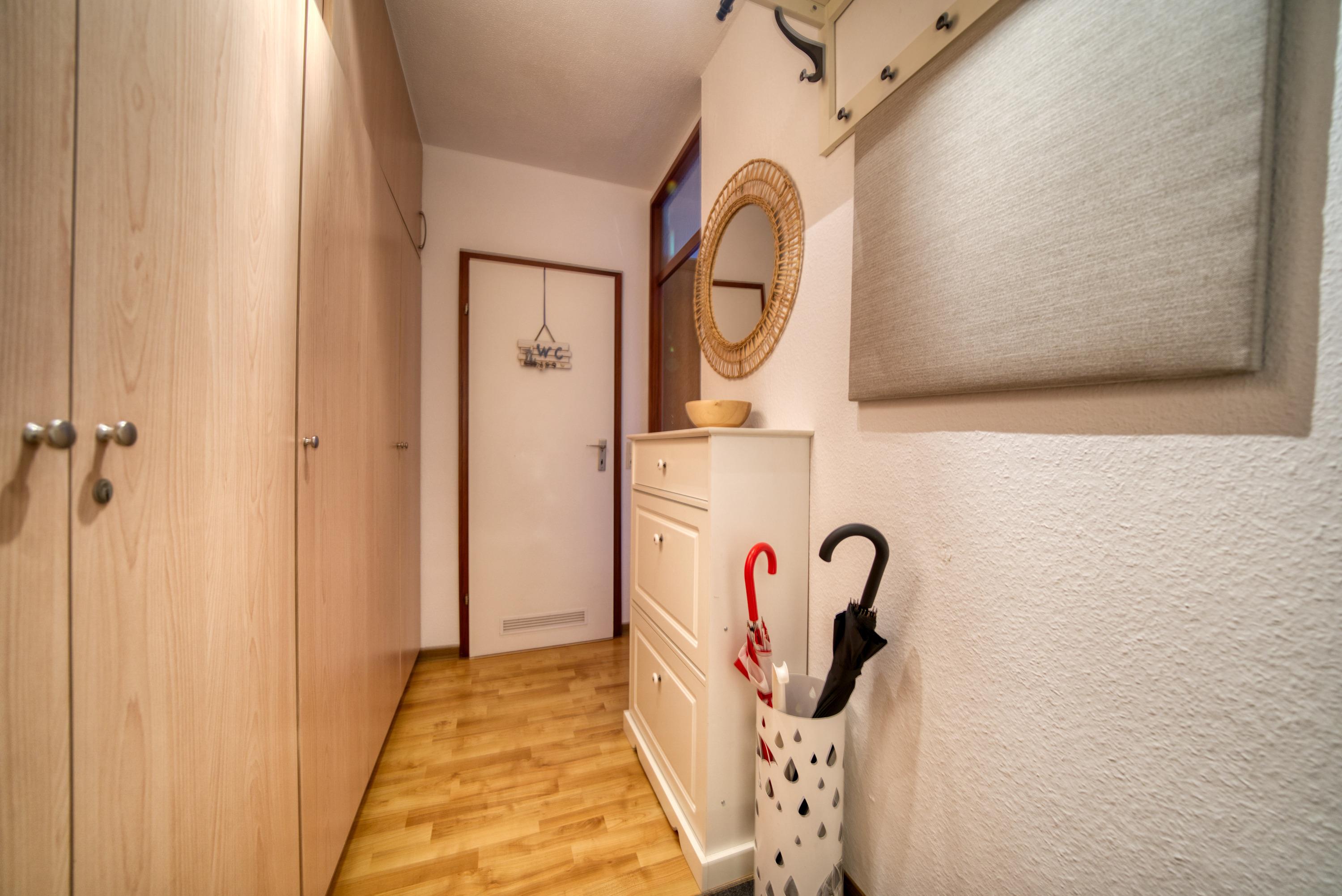 Wohn-Schlafzimmer mit Doppelbett, Eckcouch, TV und Esstisch. Separates Kinderzimmer mit Etagenbett. Küche mit Induktionskochfeld, Backofen, Mikrowelle, Geschirrspüler, Kühlschrank/Gefrierfach, Toaster, Wasserkocher und Kaffeemaschine. Bad mit Dusche und WC. Kostenloses WLAN, Kinderhochstuhl. Nichtraucher, keine Haustiere, Fahrstuhl, kostenfreier Parkplatz, abschließbare Fahrradräume. Strand ca. 300?m, Aktiv-Hus, Läden, Restaurants und Bäcker in direkter Nähe. Ideal für komfortable Ostseeferien.