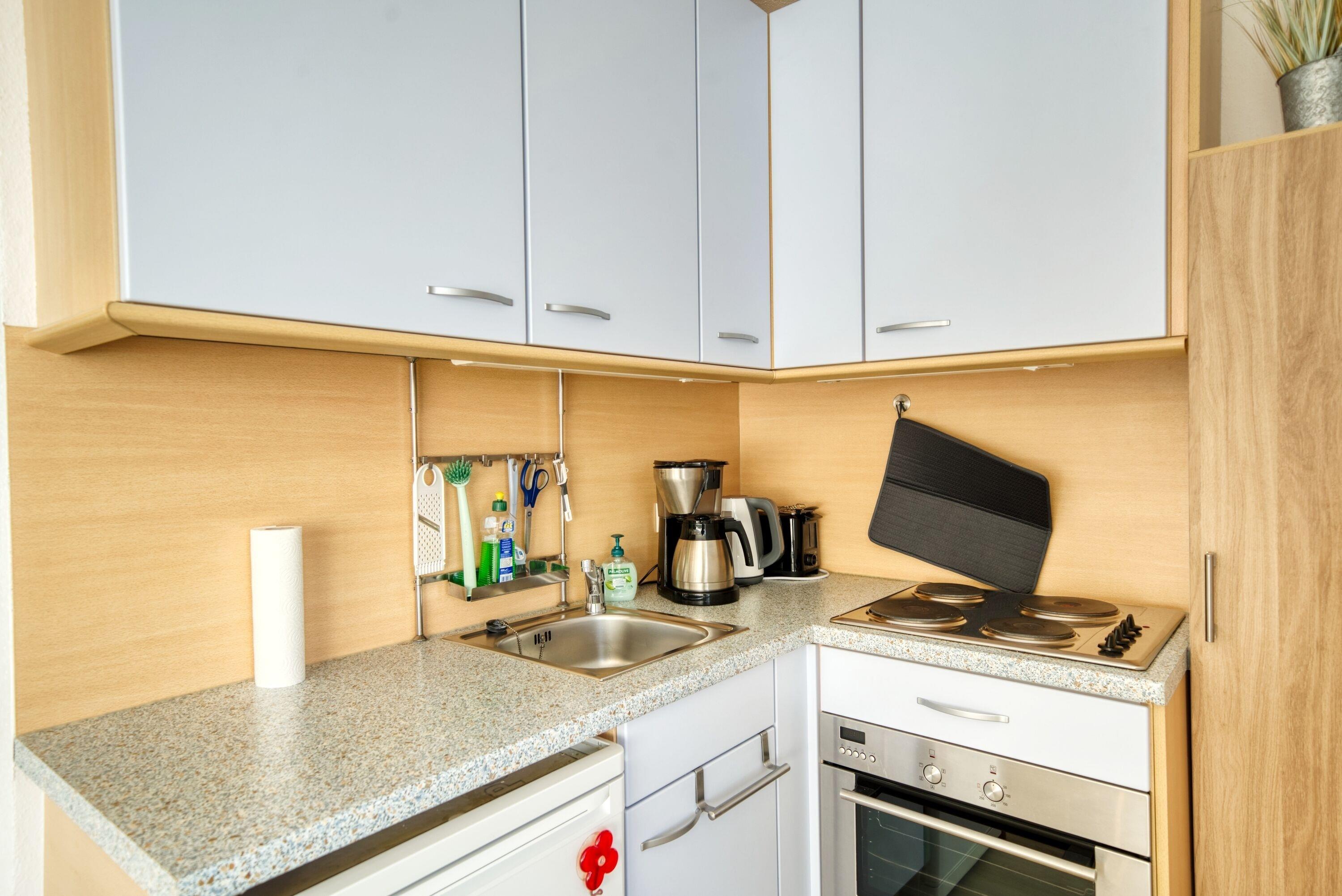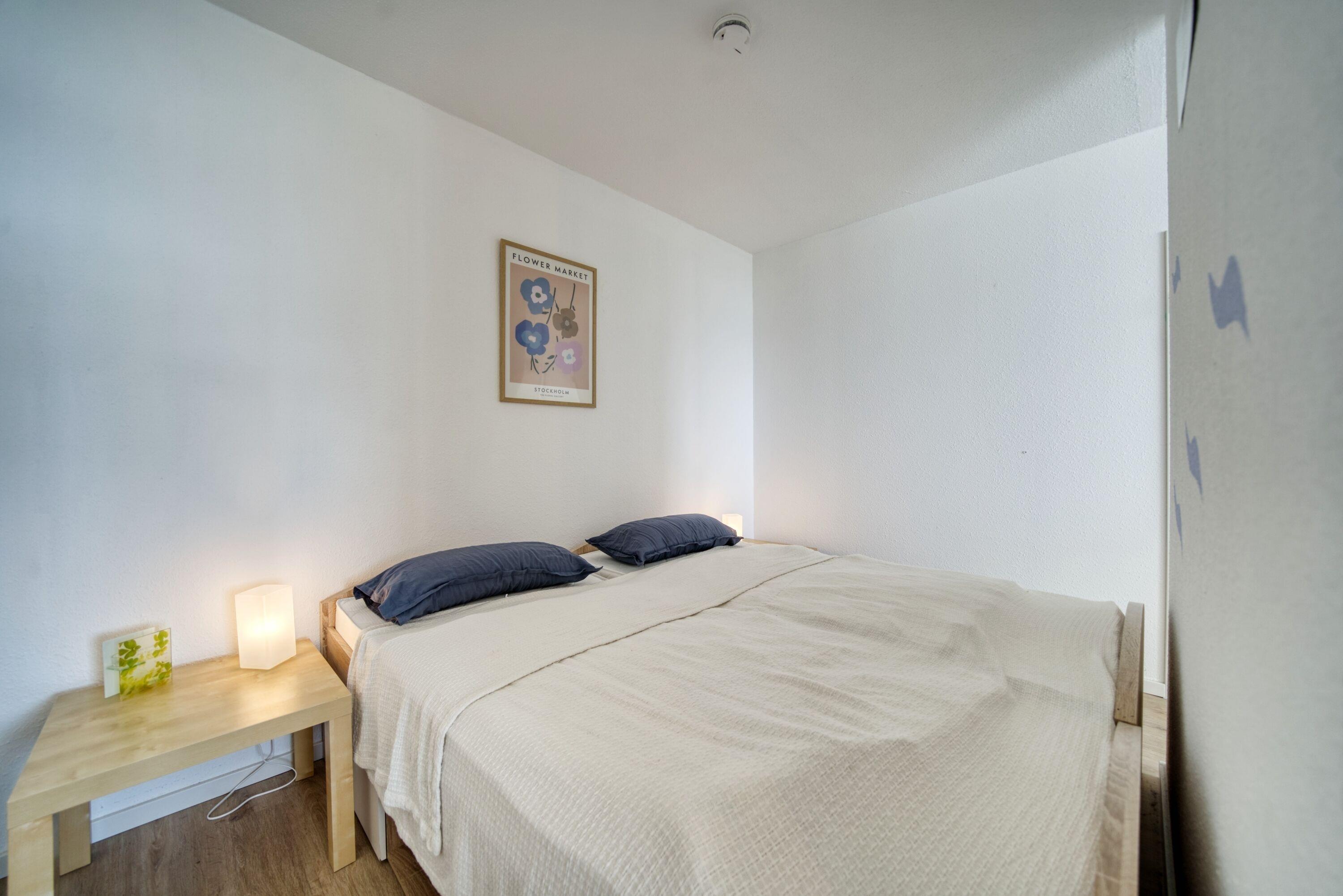 Wohnung im Haus L, 10. Etage, Balkon zur Südseite mit Blick auf Salzwiesen und Ostsee, Strand ca. 300?m. Wohnfläche 45?m²: Wohn-Esszimmer, Elternschlafbereich mit Doppelbett, Kinderzimmer mit Hochbett, komplett ausgestattete Küche (Kühlschrank/Gefrierfach, 4-Platten-Herd, Backofen), modernisiertes Bad mit Dusche/WC. Nichtraucher, haustierfrei, max. 4 Personen, Fahrstuhl, kostenloses WLAN, kostenfreier Parkplatz. Ideal für Familien oder Paare.