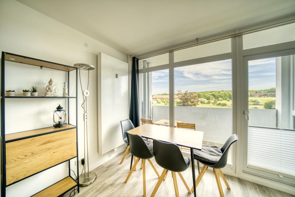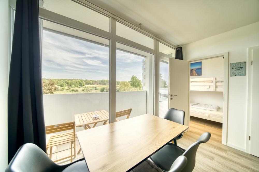 Willkommen in Ihrer hochwertig ausgestatteten Ferienwohnung in Haus N, 2. Etage, mit Südlage, 45?m² Wohnfläche und Platz für bis zu 4 Personen. Der Balkon mit Blick auf Felder und teilweise den Binnensee sorgt für echtes Urlaubsgefühl in ruhiger Lage.