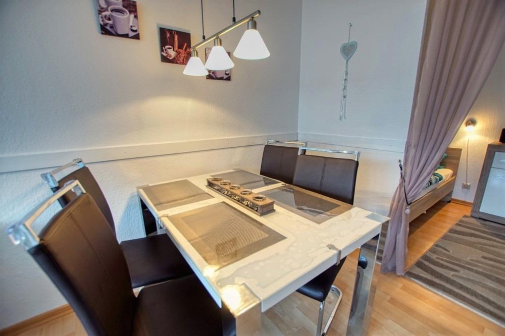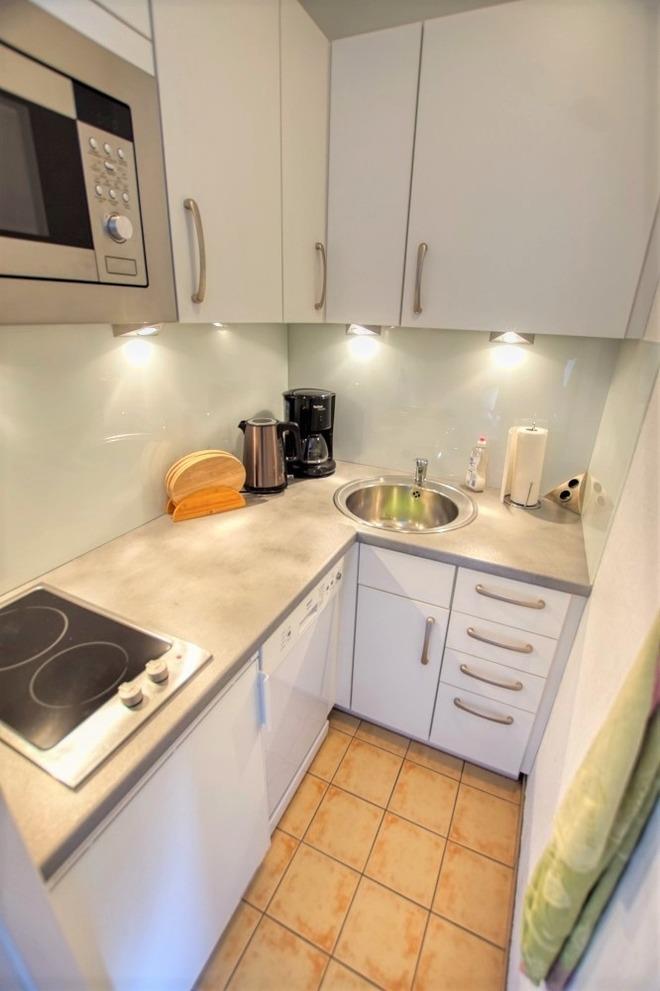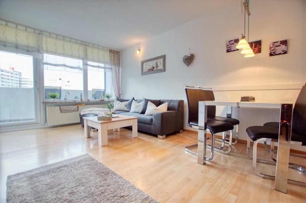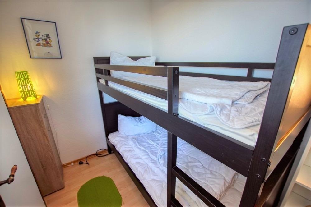 Wohnfläche 45?qm: Wohn-Esszimmer, Elternschlafraum mit Einzelbetten, Kinderzimmer mit Etagenbett, Küche mit Kühlschrank, Mikrowelle, Wasserkocher, Kaffeemaschine, 2-Plattenherd, Bad mit WC und Duschkabine, Wohnzimmer mit Flachbild-TV. Teils renoviert (neue Couch, Duschkabine). WLAN inklusive. Max. 4 Personen, Nichtraucher, keine Haustiere. Fahrstuhl, Fahrradräume, Strand ca. 300?m, Aktiv-Hus mit Schwimmbad, Sauna und Kinderspielwelt in der Nähe.