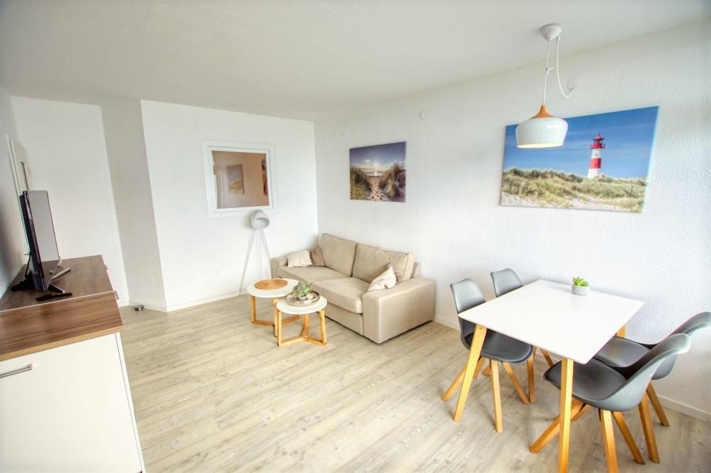 Die Wohnung ist für maximal 4 Personen (2 Erwachsene, 2 Kinder) geeignet, Nichtraucher und haustierfrei. WLAN und Kinderhochstuhl sind vorhanden. Der Ferienpark bietet zahlreiche Freizeitmöglichkeiten, u. a. Läden und das „Aktiv-Hus“ mit Schwimmbad, Sauna, Wellnessbereich und Kinderspielwelt. Der Strand ist ca. 300 m entfernt und über die Promenade erreichbar.
