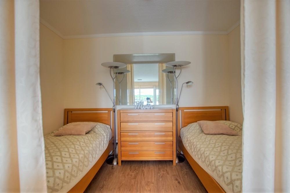 Die 45?qm große Wohnung im Haus N, 9. Etage, verfügt über einen Balkon zur Südseite mit Markise und Blick auf den Binnensee, Yachthafen und Wiesen. Das Wohn-Esszimmer ist mit Flachbild-TV und Radio ausgestattet. Der Elternschlafraum hat Einzelbetten, das Kinderzimmer ein Etagenbett. Die Küche ist komplett mit Induktionskochfeld, Kühlschrank, Geschirrspüler und Backofen ausgestattet. Das Bad verfügt über WC und Dusche.