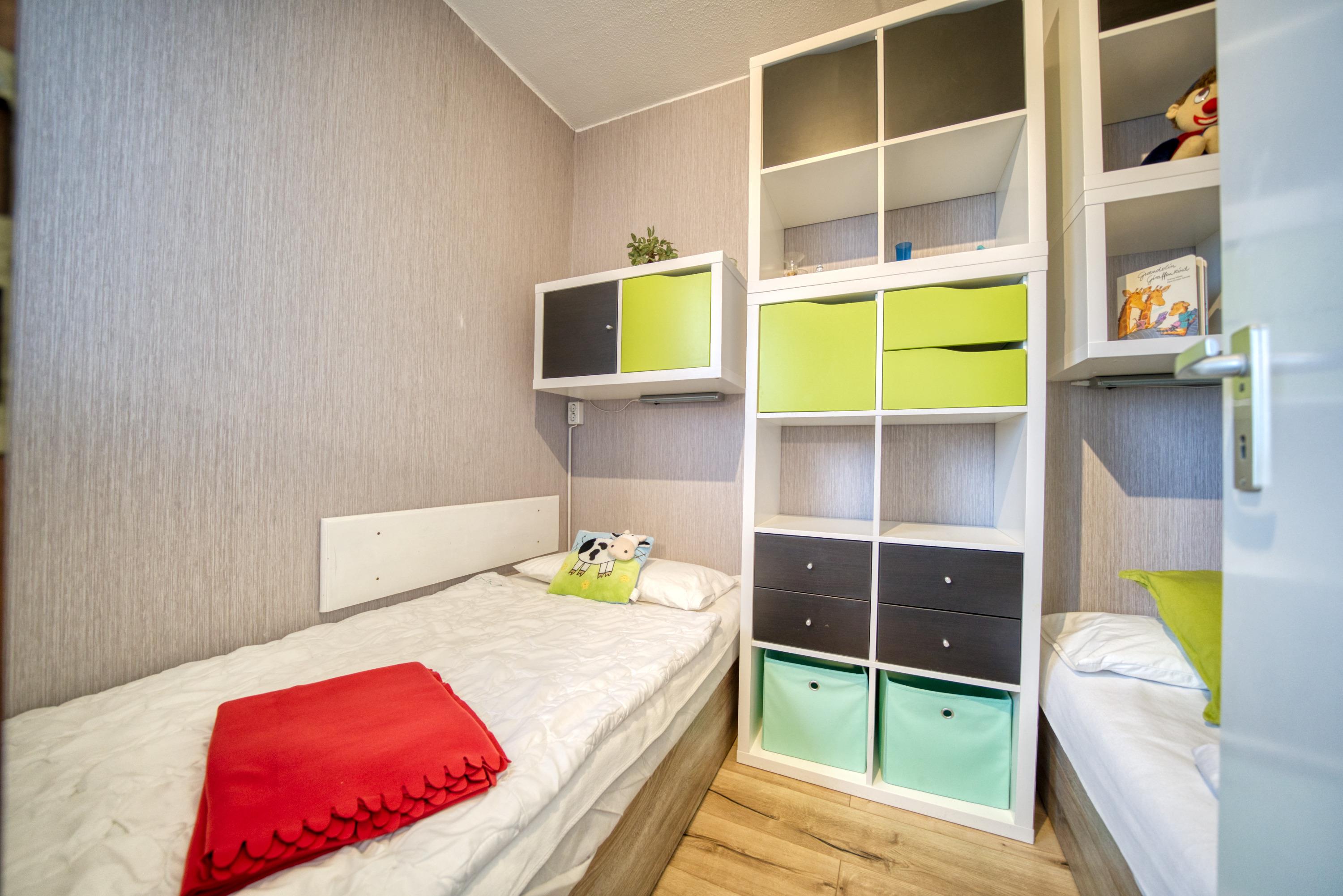 Wohn-Schlafraum mit Doppelbett, Ecksofa, Esstisch vor dem Balkon und Smart-TV. Separates Schlafzimmer mit zwei Einzelbetten und eigenem TV. Küche mit Ceranherd, Kühlschrank, Geschirrspüler, Mikrowelle, Toaster, Wasserkocher und Kaffeemaschine. Bad mit Dusche, WC und Handtuchtrockner. Balkon mit Naturblick. WLAN inklusive. Nichtraucher, keine Haustiere, Fahrstuhl und Fahrradräume vorhanden. Ca. 300?m bis zum Strand, Parkplatz hinter dem Ferienpark. Ferienpark mit Läden, Aktiv-Hus (Schwimmbad, Sauna, Wellness), Kinderspielwelt und vielfältigen Freizeitmöglichkeiten.