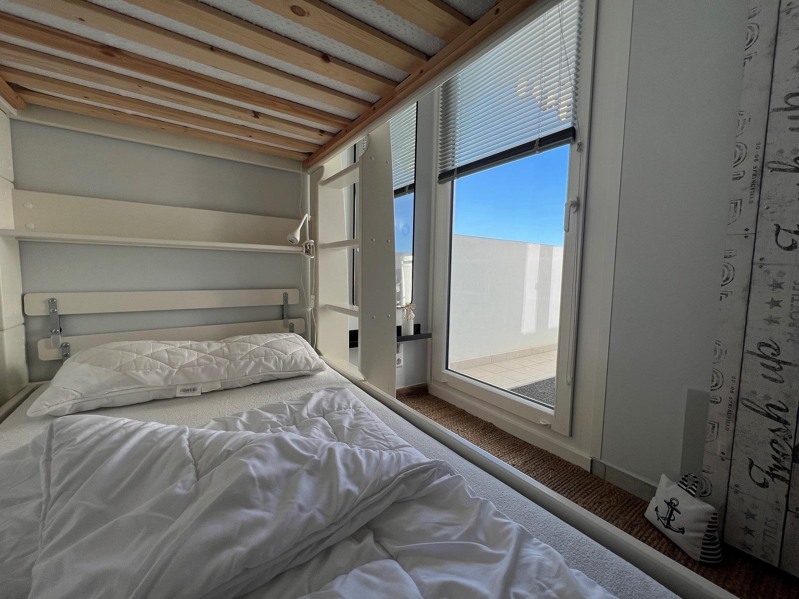 Genießen Sie Ihren Urlaub in der stilvollen Ferienwohnung Küstenkoje im Haus O des Ferienparks Heiligenhafen. Auf 45?m² bietet die Wohnung in der 4. Etage Platz für bis zu 4 Personen.