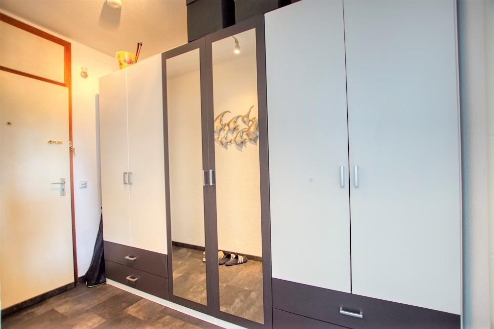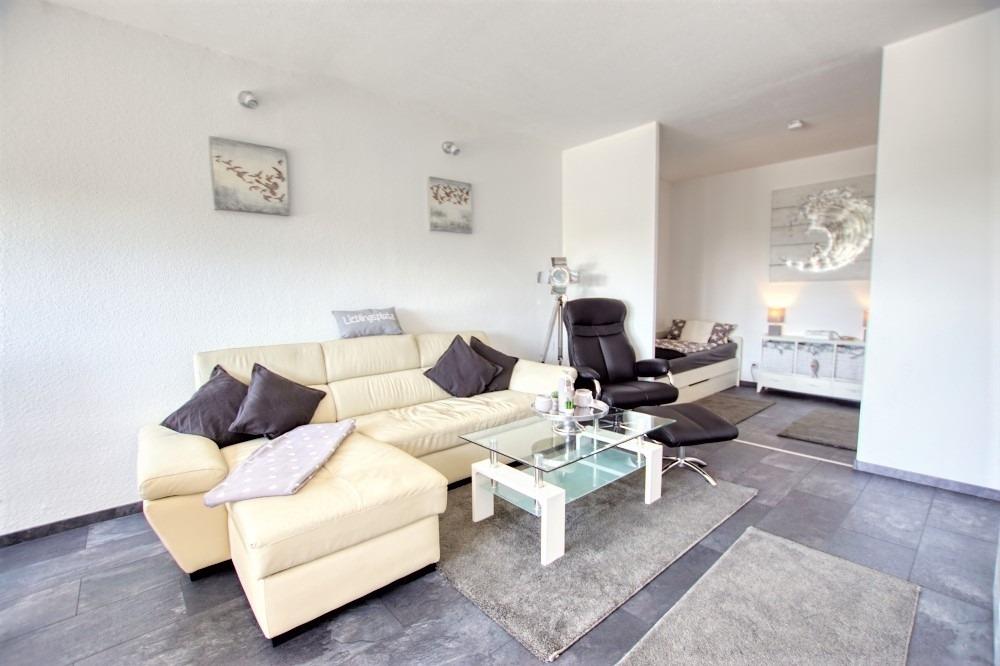 Wohn-/Schlafzimmer mit zwei Einzelbetten, Ecksofa, Sessel, Flachbild-TV und Esstisch. Separates Schlafzimmer mit Etagenbett, eigenem TV und Schreibtisch. Küche mit 2-Platten-Ceranfeld, Backofen, Kühlschrank, Nespresso-Kaffeemaschine, Wasserkocher. Bad mit Dusche, WC und Handtuchtrockner. WLAN, Nichtraucher, keine Haustiere, Fahrstuhl, Fahrradräume, Parkplatz inklusive, ca. 300?m bis zum Strand. Perfekt für Familienurlaub oder entspannte Auszeit in ruhiger Lage mit schöner Aussicht.