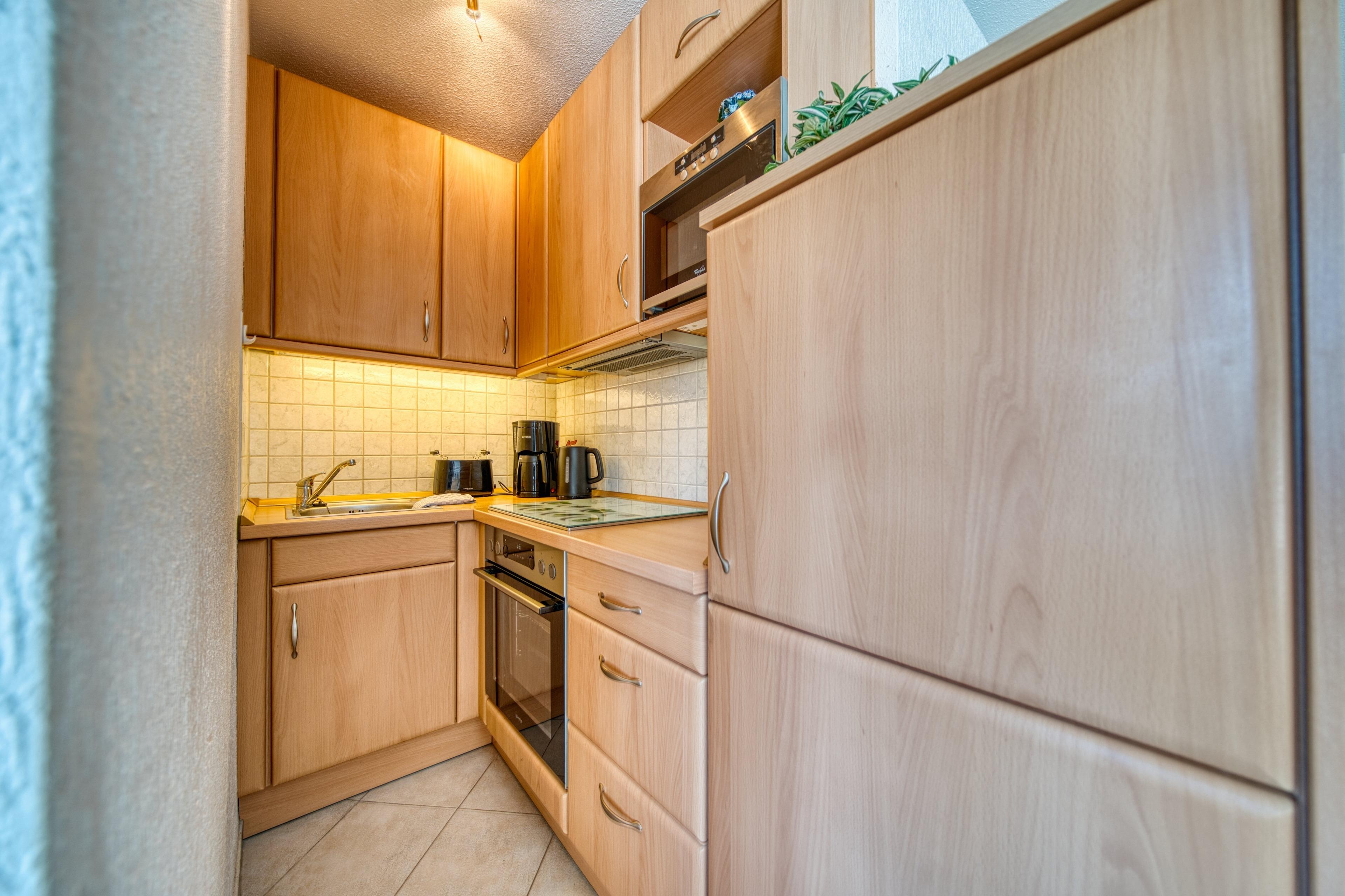 Die Wohnung verfügt über zwei Schlafzimmer, ein Wohnzimmer mit offener Küche (Backofen, Cerankochfeld, Kühlschrank, Essutensilien) und ein Badezimmer mit Dusche. Balkon mit Blick auf den Binnensee. Nichtraucherwohnung, ca. 300?m zum Strand, ideale Lage nahe Promenade, Cafés, Einkaufsmöglichkeiten und dem Aktiv-Hus mit Schwimmbad, Wellness und Kinderspielwelt.