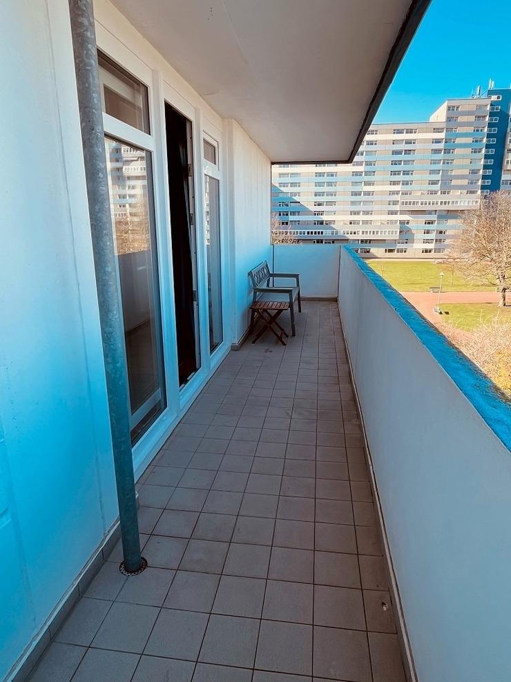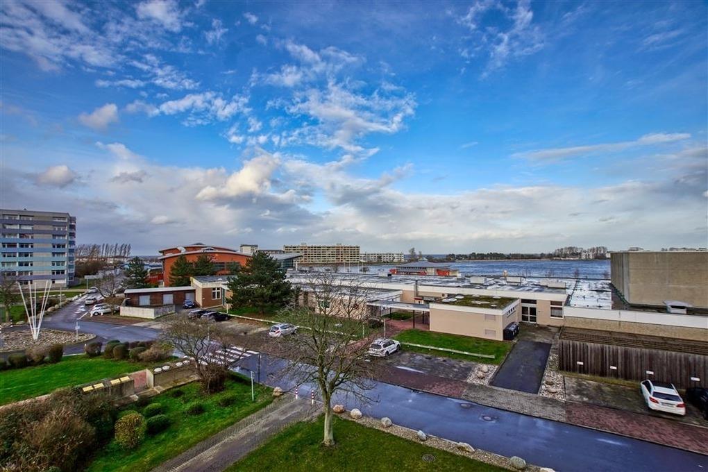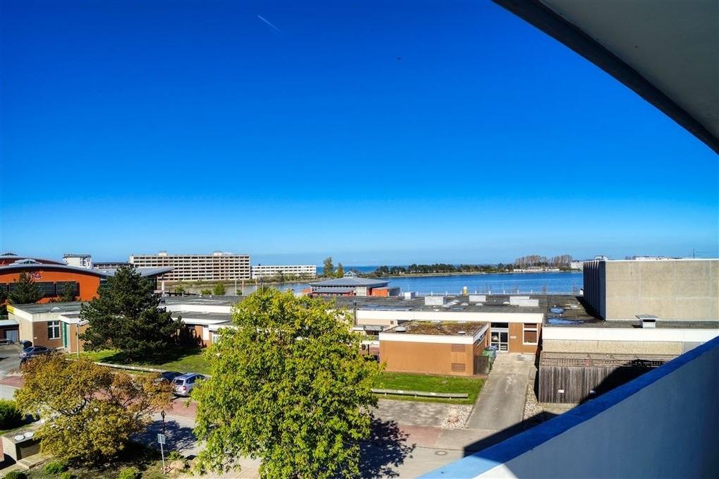 Der großzügige Balkon zur Nordseite ermöglicht Ausblicke auf die Ostsee, den Binnensee sowie den begrünten Innenhof und verbindet Weitblick mit Ruhe.