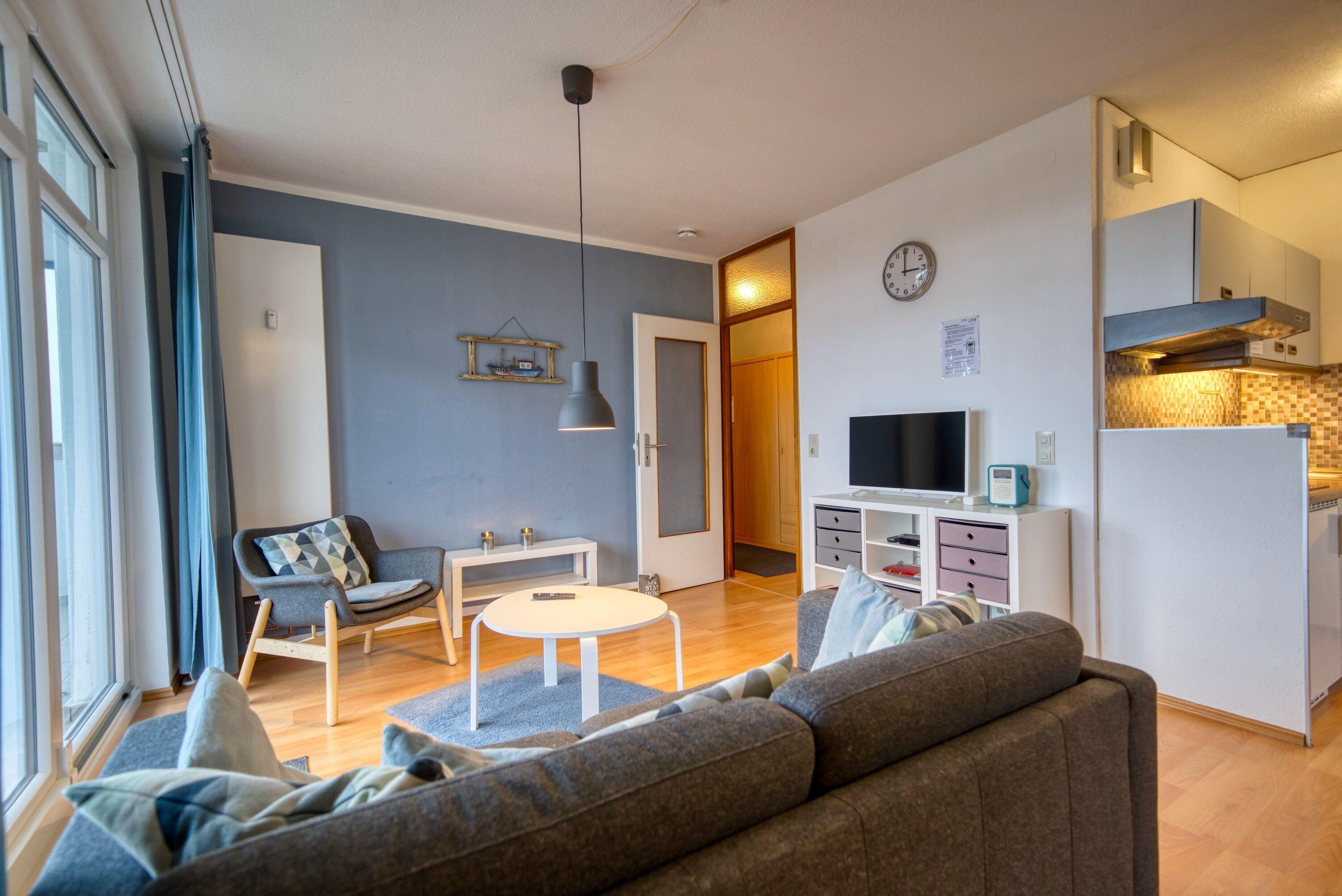 Kostenfreies WLAN, Fahrstuhl, Fahrradraum und kostenfreier Parkplatz sind vorhanden. Nichtraucherwohnung, keine Haustiere. Der Strand ist ca. 300 m entfernt. Der Ferienpark bietet zahlreiche Freizeitmöglichkeiten mit Geschäften und dem Aktiv-Hus.