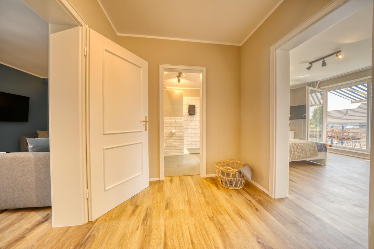 Bonus: WLAN, Fahrstuhl, Tiefgaragenstellplatz, Kinderhochstuhl, Insektenschutz, kindersicher. Nichtraucherwohnung, bis zu 2 Hunde erlaubt. Perfekt für Familien und Freunde, die Komfort, moderne Ausstattung und ruhige Lage nahe Wasser wünschen.