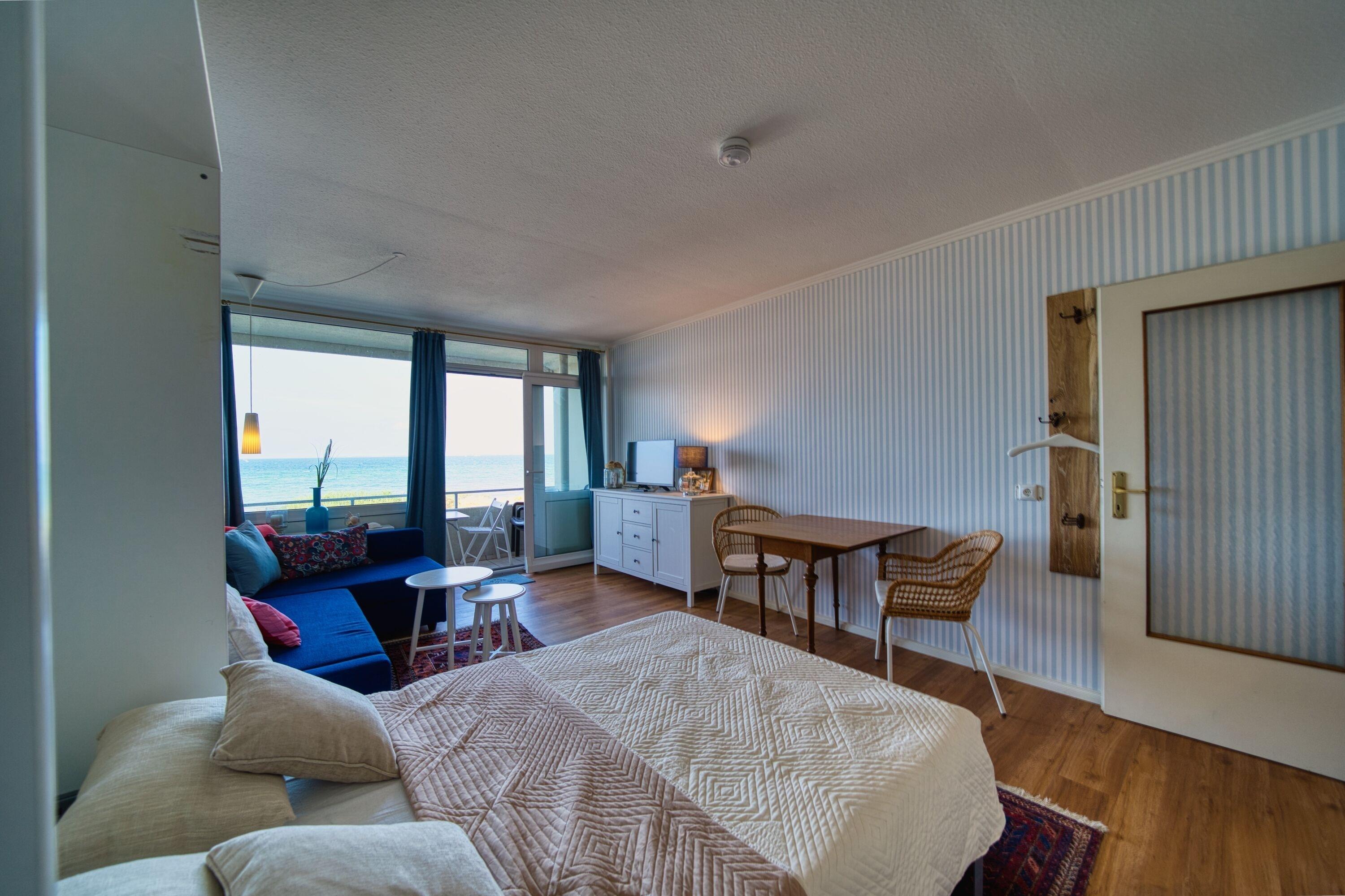 Der Wohn-Schlafraum ist mit einem praktischen Schrankbett ausgestattet. Die kleine Küche verfügt über Kühlschrank mit Gefrierfach, Toaster, Wasserkocher und 2-Kochfeld-Herd. Das Bad ist mit Fußbodenheizung ausgestattet.