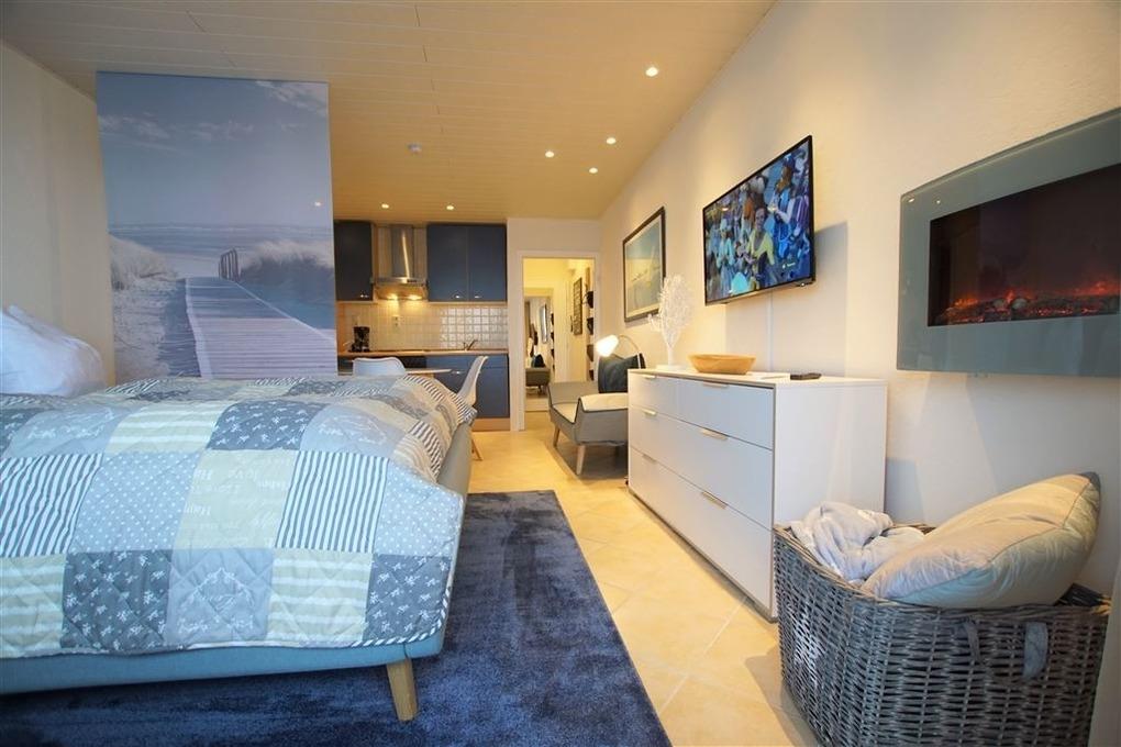 Der Wohn-/Schlafraum ist mit Doppelbett ausgestattet. Die Pantryküche verfügt über Ceranfeld, Backofen, Kühlschrank und Mikrowelle. Modernes Bad mit Dusche und WC, TV für gemütliche Abende. Fahrstuhl, gemeinschaftlicher Fahrradkeller und eigener Pkw-Stellplatz vorhanden.