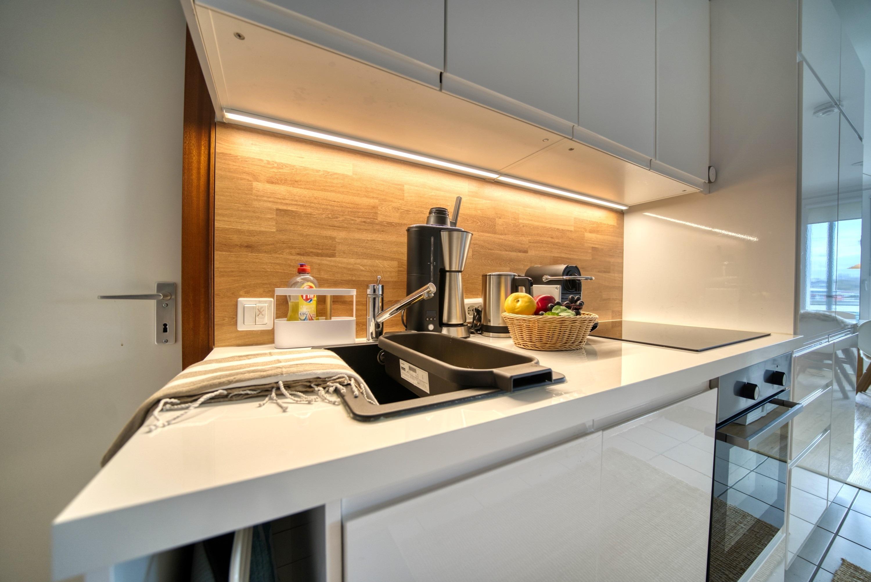 Küche: Backofen, Induktionskochfeld, Geschirrspüler, Filterkaffee [&] Nespresso