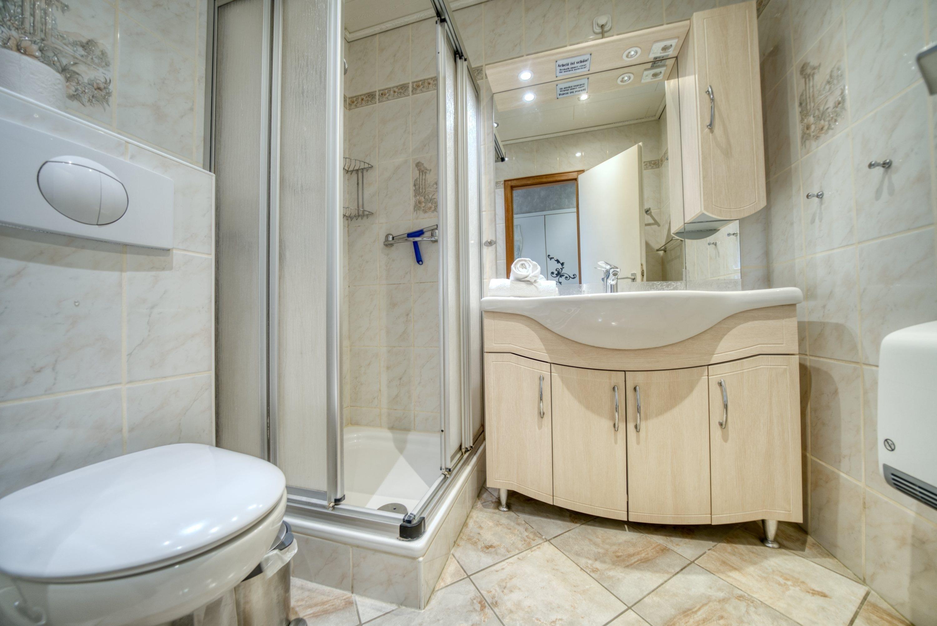 Zwei separate Schlafzimmer (Doppelbett + 2 Einzelbetten), Wohn-/Essbereich mit Sitzecke, voll ausgestattete Küche (Ceranherd, Mikrowelle, Kühlschrank, Wasserkocher, Kaffeemaschine, Toaster), Badezimmer mit Dusche/WC, Balkon mit Blick auf den Binnensee. Laminatboden, WLAN inklusive. Fahrstuhl im Haus, eigener Pkw-Stellplatz, Gemeinschafts-Fahrradkeller.