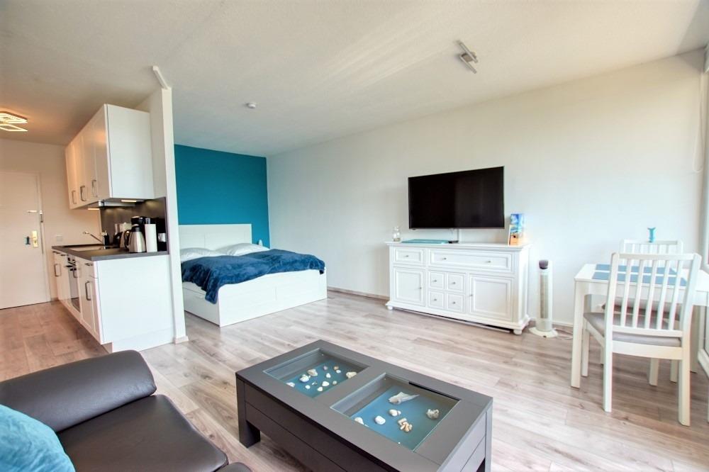 Für max. 2 Personen, 36?m² Wohnfläche, Wohn-/Schlafbereich mit Doppelbett, Flachbild-TV und Balkon mit Binnenseeblick. Voll ausgestattete Küchenzeile mit Cerankochfeld, Backofen, Kühlschrank mit Gefrierfach, Filterkaffeemaschine, Wasserkocher, Toaster und Geschirrspüler. Badezimmer mit Duschkabine, WC und Waschbecken. Vinylboden, Fahrstuhl, WLAN inklusive, eigener PKW-Stellplatz, gemeinschaftlicher Fahrradkeller. Hund erlaubt. Ruhige Lage, Strand nur wenige Schritte entfernt – ideal für Spaziergänge und Ostseeurlaub.