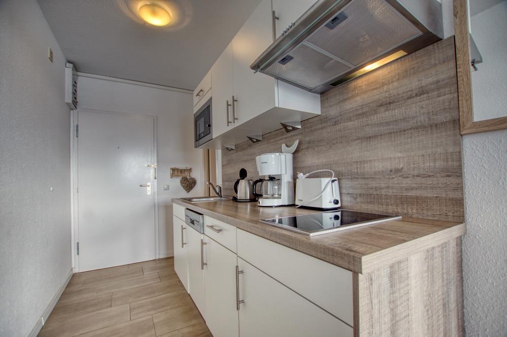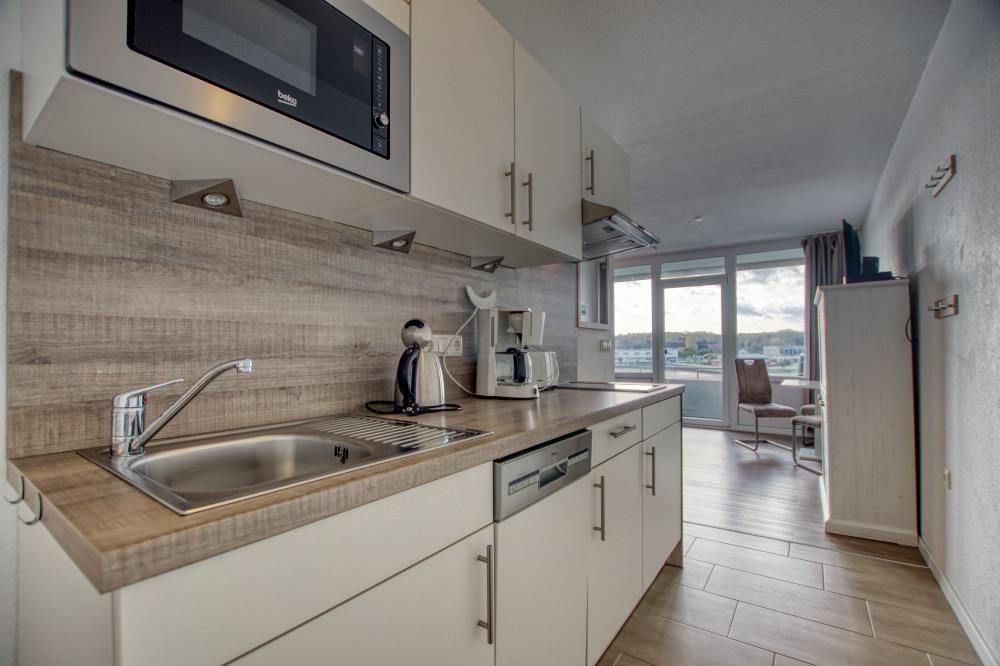 Die ca. 36?m² große Wohnung bietet Wohn-/Schlafzimmer mit zwei Einzelbetten, Sofa, Flachbild-TV, Küchenzeile mit Ceranfeld, Mikrowelle, Geschirrspüler, Kühlschrank, Kaffeemaschine und Wasserkocher, sowie Duschbad. Balkon in Südlage mit Binnenseeblick. Kostenloses WLAN, saisonaler Strandkorb, Fahrstuhl, Gemeinschaftsfahrradkeller und PKW-Stellplatz vorhanden. Nichtraucherwohnung, keine Haustiere. Strand ca. 25?m, Ferienpark mit Einkauf, Gastronomie und Freizeit ca. 5?Minuten entfernt.