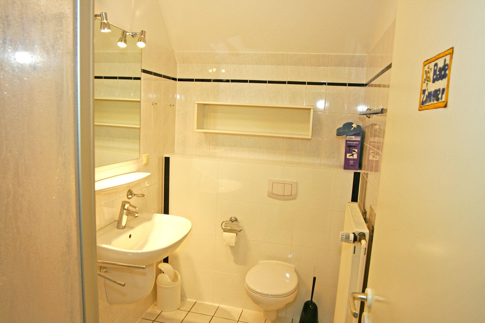 Besonders komfortabel ist die Ausstattung mit zwei hellen, modernen Duschbädern, die sich jeweils auf einer Etage befinden. Zusätzlich steht Ihnen ein separates Gäste-WC zur Verfügung, was den Aufenthalt insbesondere bei voller Belegung sehr angenehm macht. Pflegeleichte Bodenbeläge sorgen für zusätzlichen Wohnkomfort.