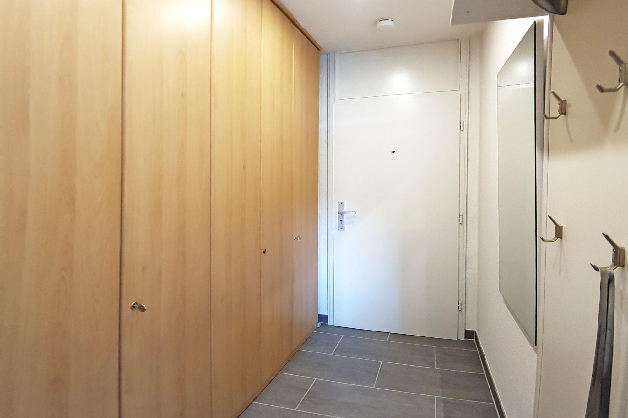 Im Flur mit Garderobe ist der große Kleiderschrank untergebracht. Hier passt wirklich alles für den Urlaub rein! Auf dem kleinen möblierten West-Balkon mit Markise genießen Sie bei traumhaften Panorama eine gute Tasse Kaffee oder ein kühles Glas Wein. Der Sonnenuntergang ist traumhaft! Die Ferienwohnung erreichen Sie bequem vom Parkplatz hinter dem Ferienpark. Zugang zur Wohnung haben Sie über Fahrstuhl oder Treppe.
