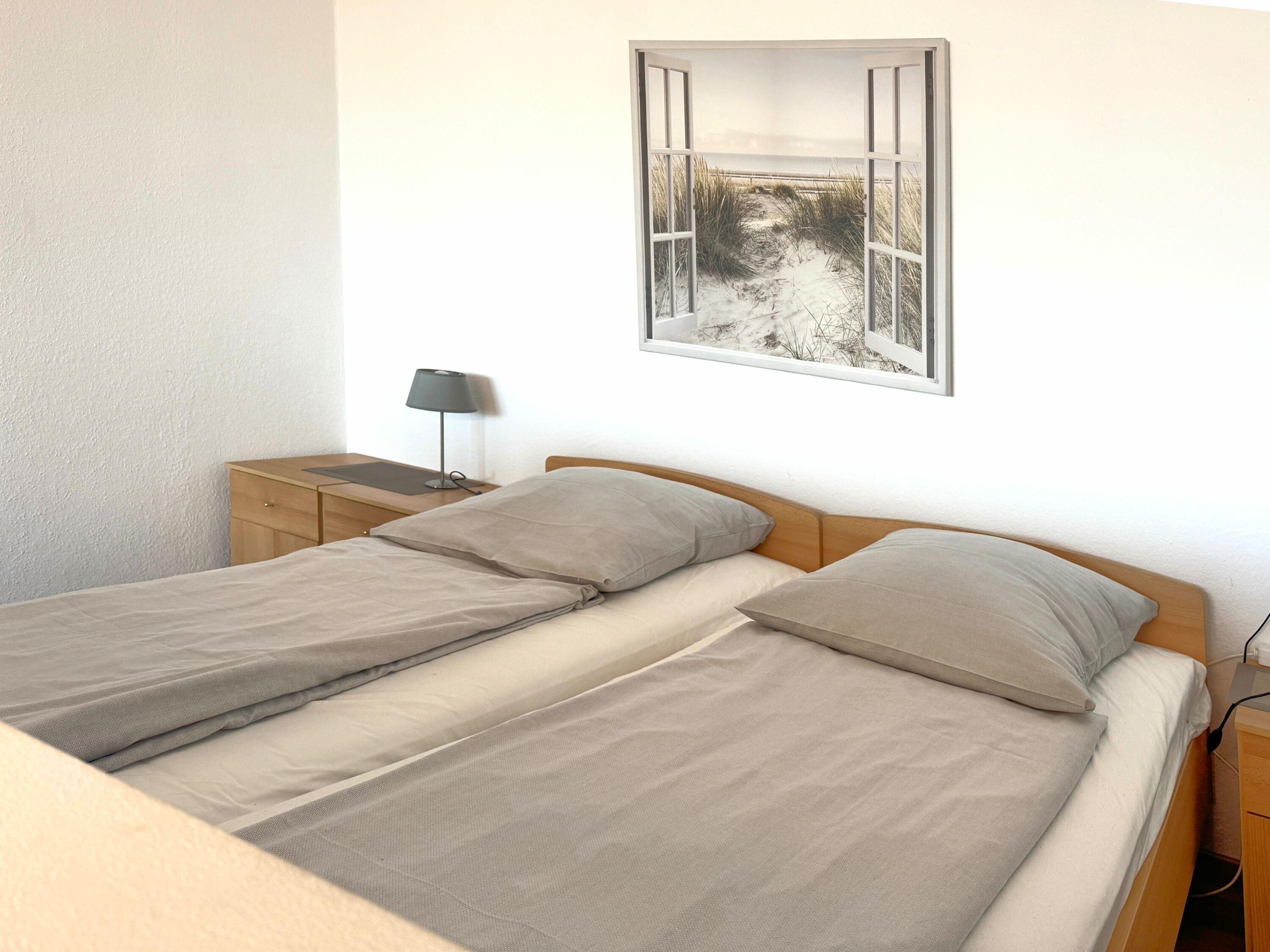 Zeitgemäße Annehmlichkeiten im hellen Wohnbereich mit Couch, TV, WLAN und pflegeleichten Böden sind selbstverständlich und sorgen für Komfort. Für die nächtliche Ruhe steht Ihnen ein vom Wohnbereich abgetrennter Schlafbereich mit Doppelbett mit Einzelmatratzen zur Verfügung. Ein weiteres kleines Schlafzimmer hält ein Einzelbett bereit. Optionale Bettwäsche und Handtuchsets sind für Allergiker geeignet und gg. Gebühr möglich. Für Verdunklung sorgen blickdichte Vorhänge.