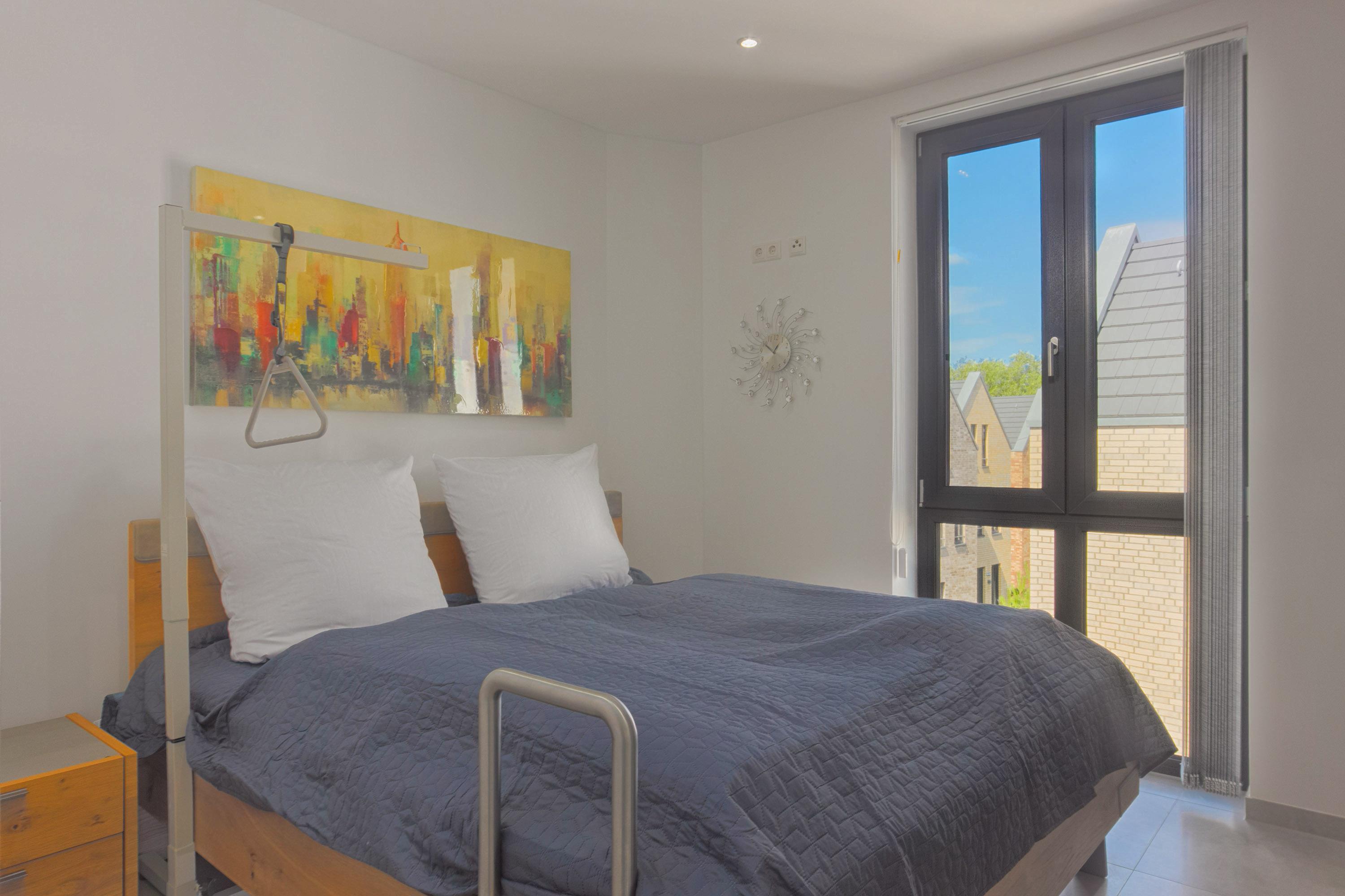 Im Hauptschlafzimmer erwartet Sie ein erhöhtes Doppelbett (180?×?200?cm, Höhe 58 cm) mit Aufstehhilfe sowie ein geräumiger Kleiderschrank. Das zweite Schlafzimmer ist mit einem kleinerem Doppelbett (140?×?200?cm) und kleinem Kleiderschrank ausgestattet. Beide Räume lassen sich mittels Lamellenvorhang abdunkeln bzw. bieten Sichtschutz. Allergiker geeignete Bettwäsche und Handtücher können optional hinzu gebucht werden.