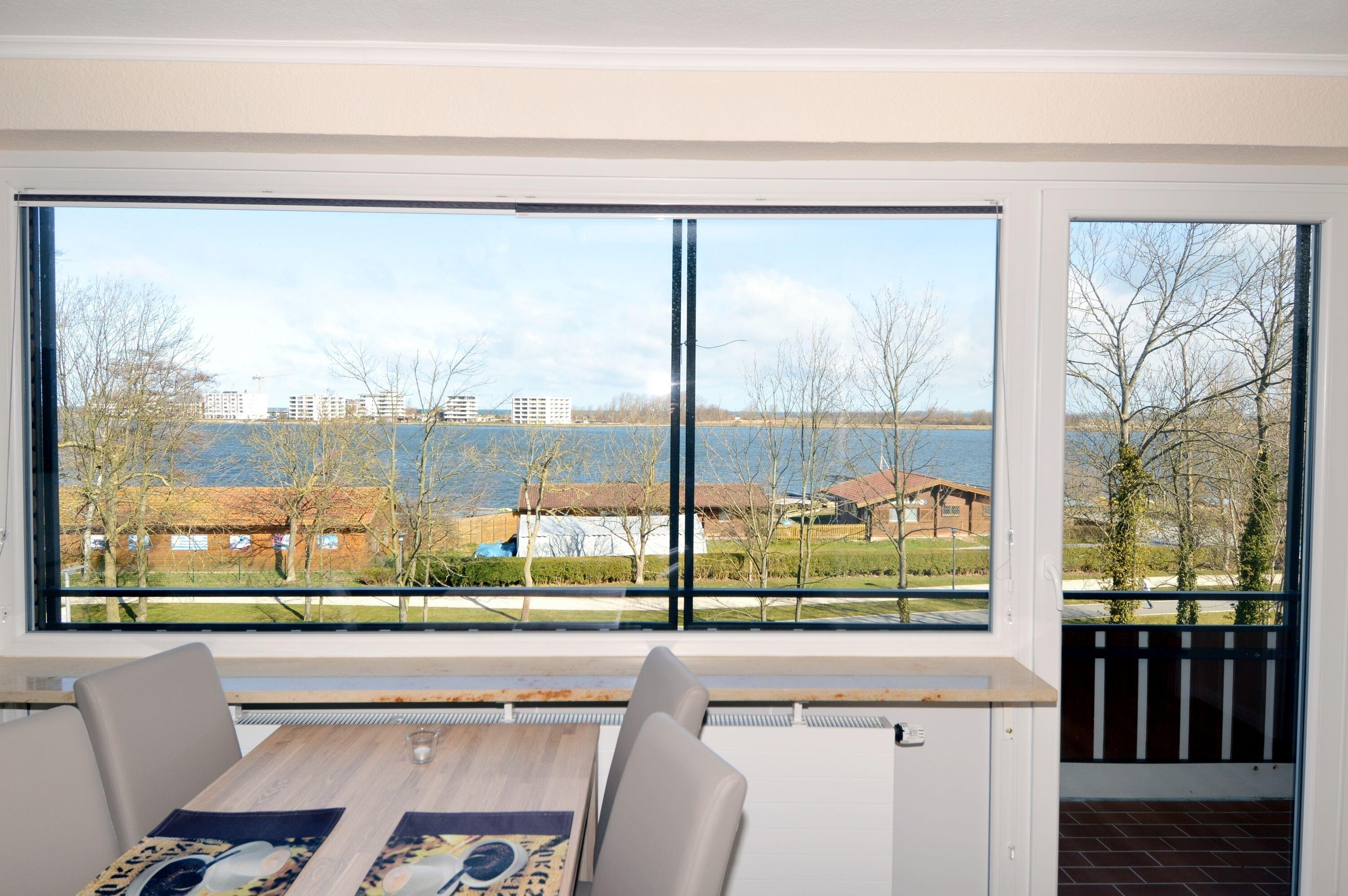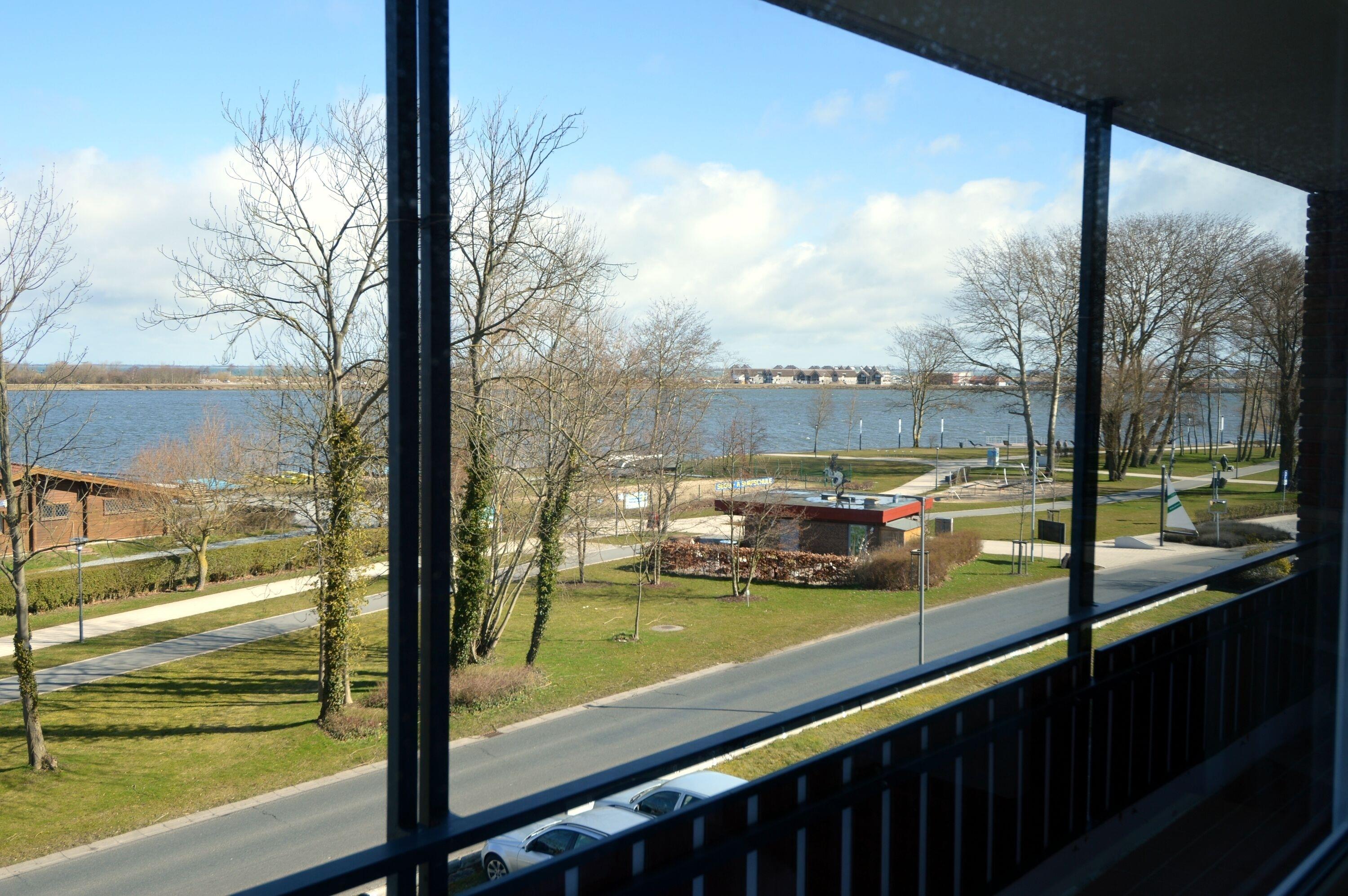 Vom Wohnbereich aus gelangen Sie auf den möblierten Balkon, der ebenfalls einen freien Blick auf den Binnensee bietet und sich ideal für entspannte Stunden an der frischen Luft eignet.