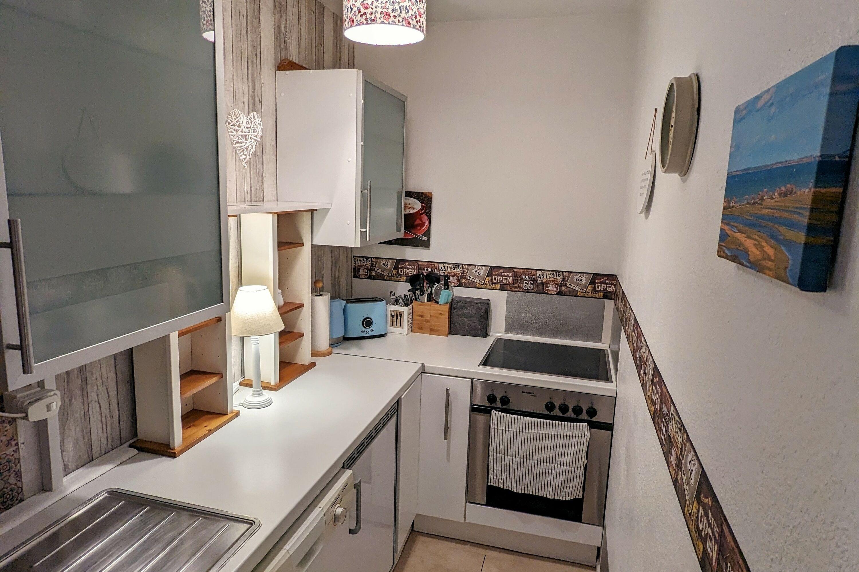 Die Küche ist vollständig ausgestattet und bietet alles, was Sie für die Selbstversorgung während Ihres Aufenthalts benötigen. So können Sie Ihre Mahlzeiten ganz flexibel gestalten – ob ein schnelles Frühstück oder ein entspanntes Abendessen nach einem Strandtag.