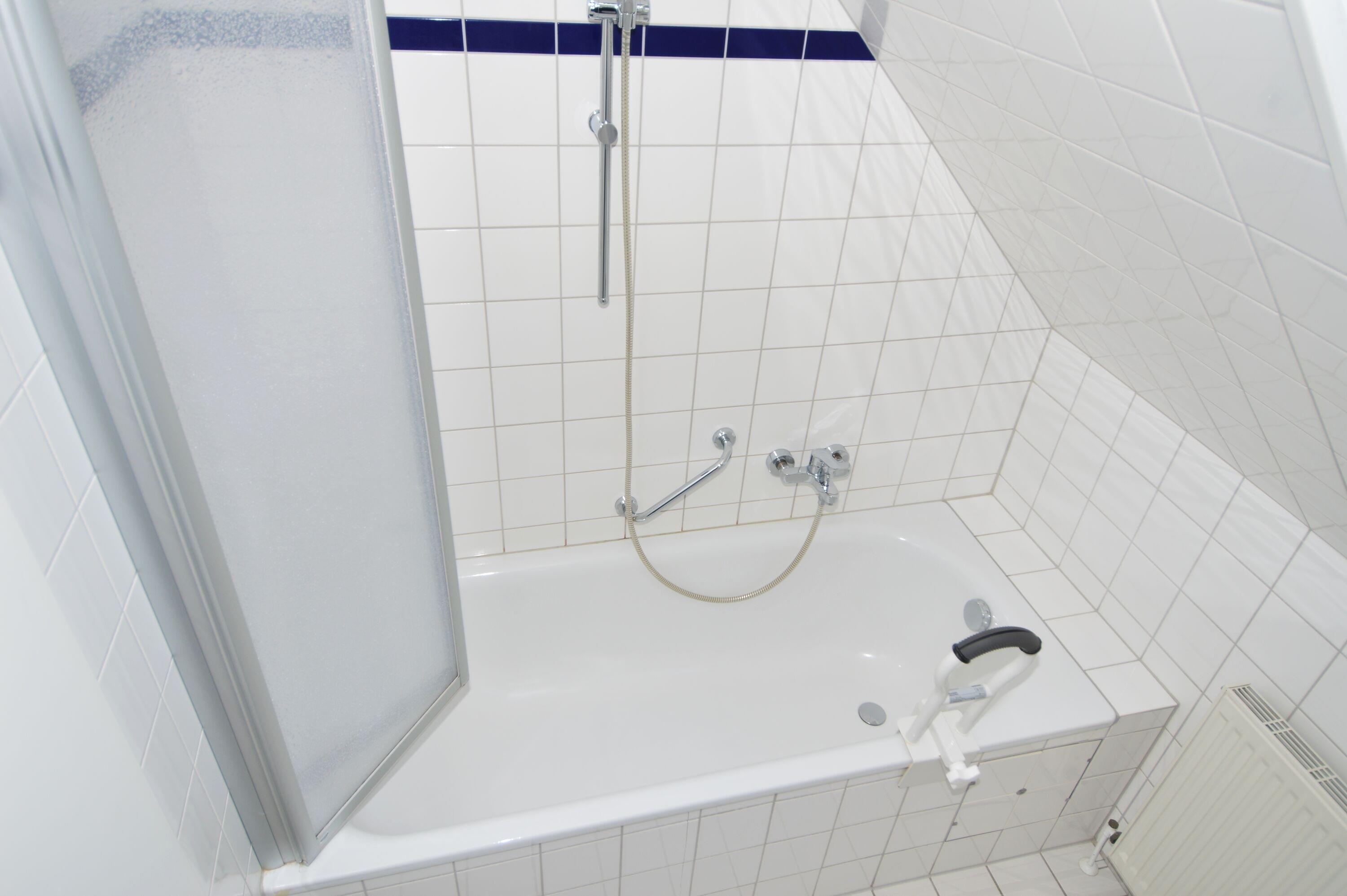 Das Badezimmer ist gepflegt und funktional gestaltet und verfügt über eine Badewanne sowie ein Waschbecken – ideal, um nach einem Spaziergang entlang des Binnensees oder einem Strandtag zu entspannen.