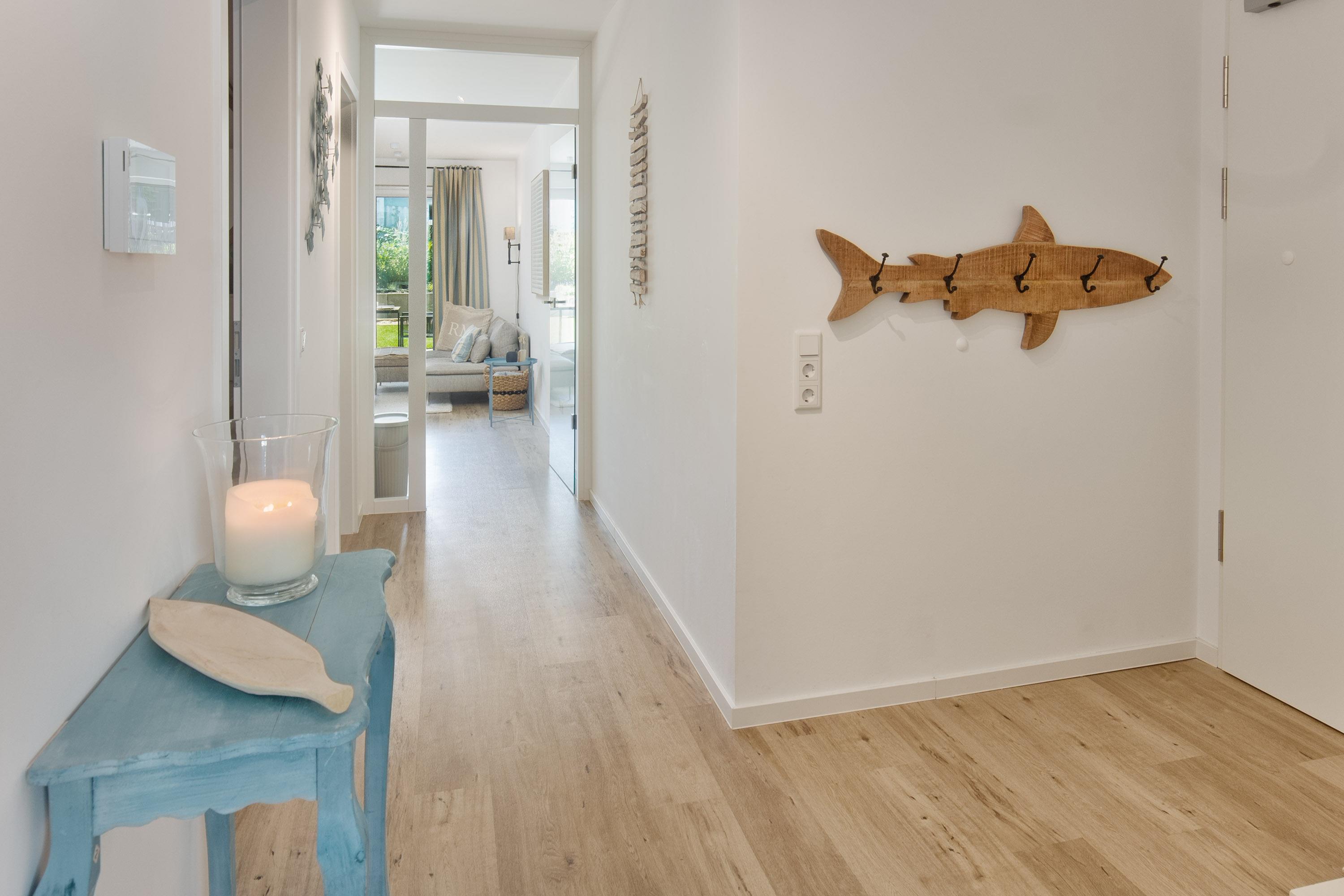 Die offene und voll ausgestattete Küche direkt neben dem Wohnbereich bietet Ihnen während Ihres Aufenthaltes alle Annehmlichkeiten. Der Essbereich ist hier direkt angeschlossen. Damit müssen Sie auch im Urlaub auf Wohnkultur nicht verzichten. Für die eigene Versorgung ist der Marktplatz in 250 m und der Hafen in nur 400 m schnell erreicht. Zur Seebrücke und Strand sind es ebenfalls nur ca. 900 m.