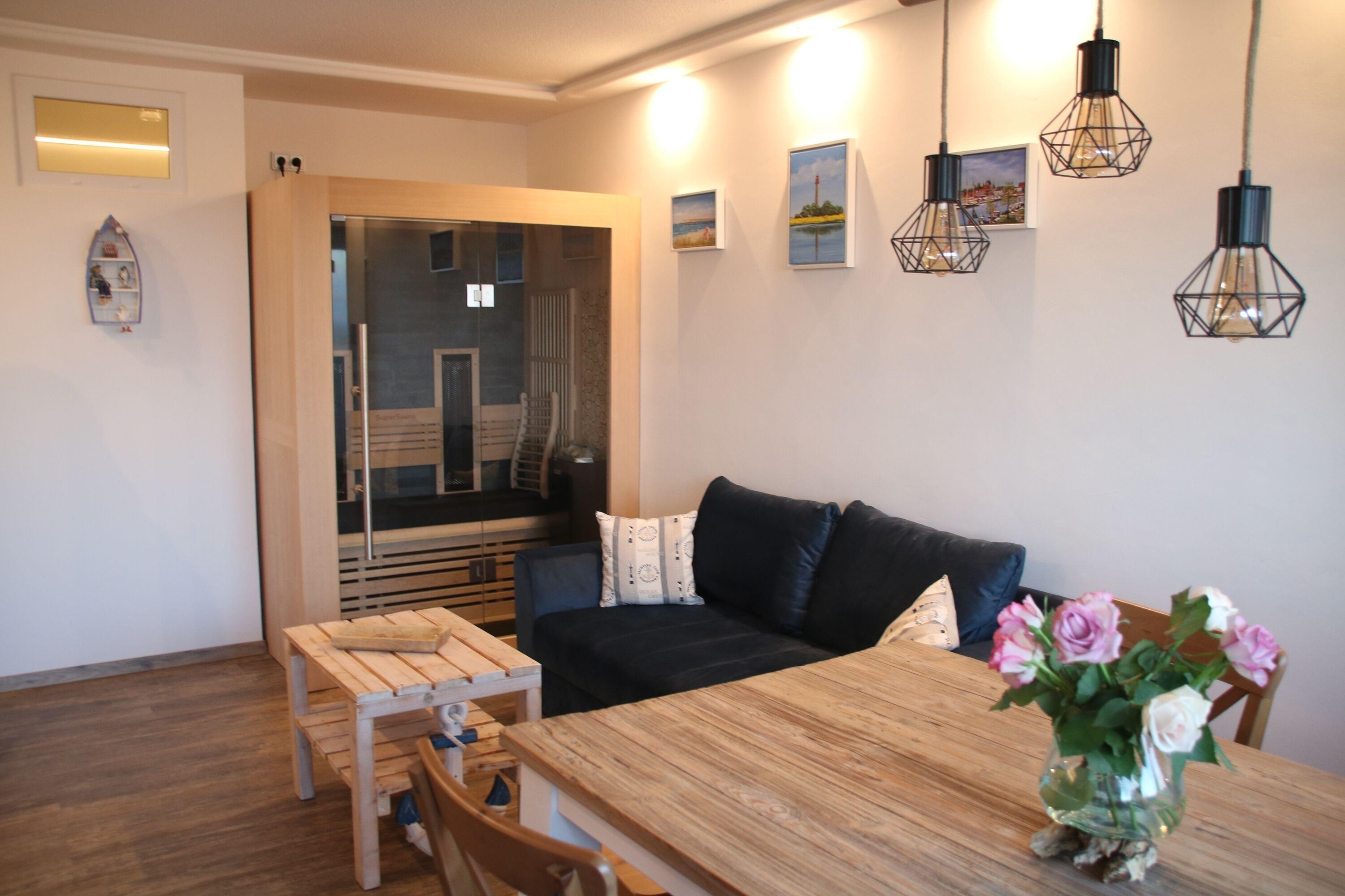 Ein besonderes Highlight ist die wohnungseigene Infrarot-/Kombisauna. (Die therapeutische Infrarotkabine mit finnischer Sauna kombiniert, bietet zusätzliche Erholung und Wohlfühlmomente).