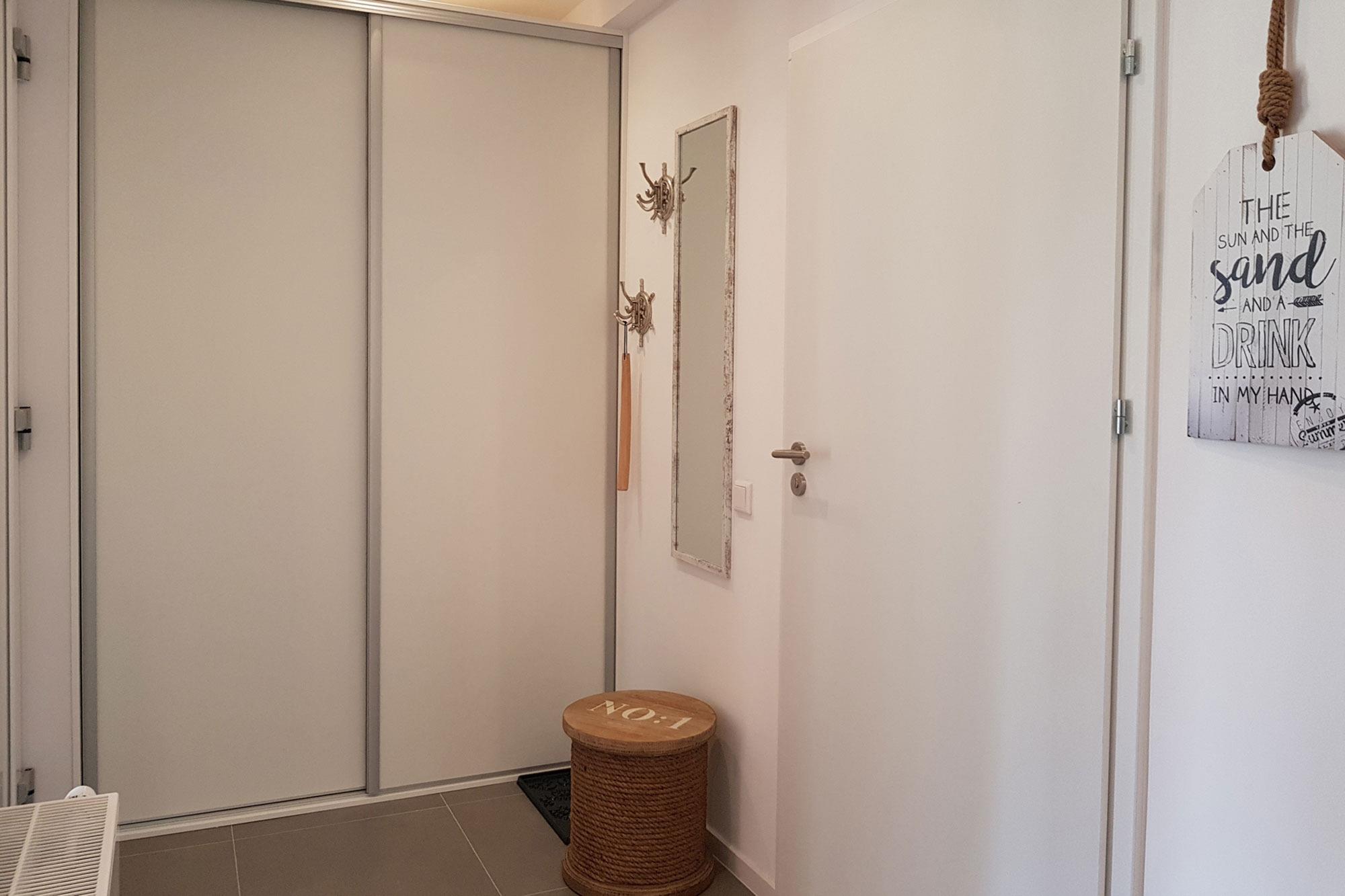 Der Flur verfügt über reichlich Stauraum für Koffer, Staubsauger und weitere Utensilien. Eine Waschmaschine ist ebenfalls vorhanden. Sämtliche Räume und Zugänge sind ebenerdig und barrierearm – Stufen gibt es keine. Der dazugehörige Parkplatz ist bequem erreichbar.