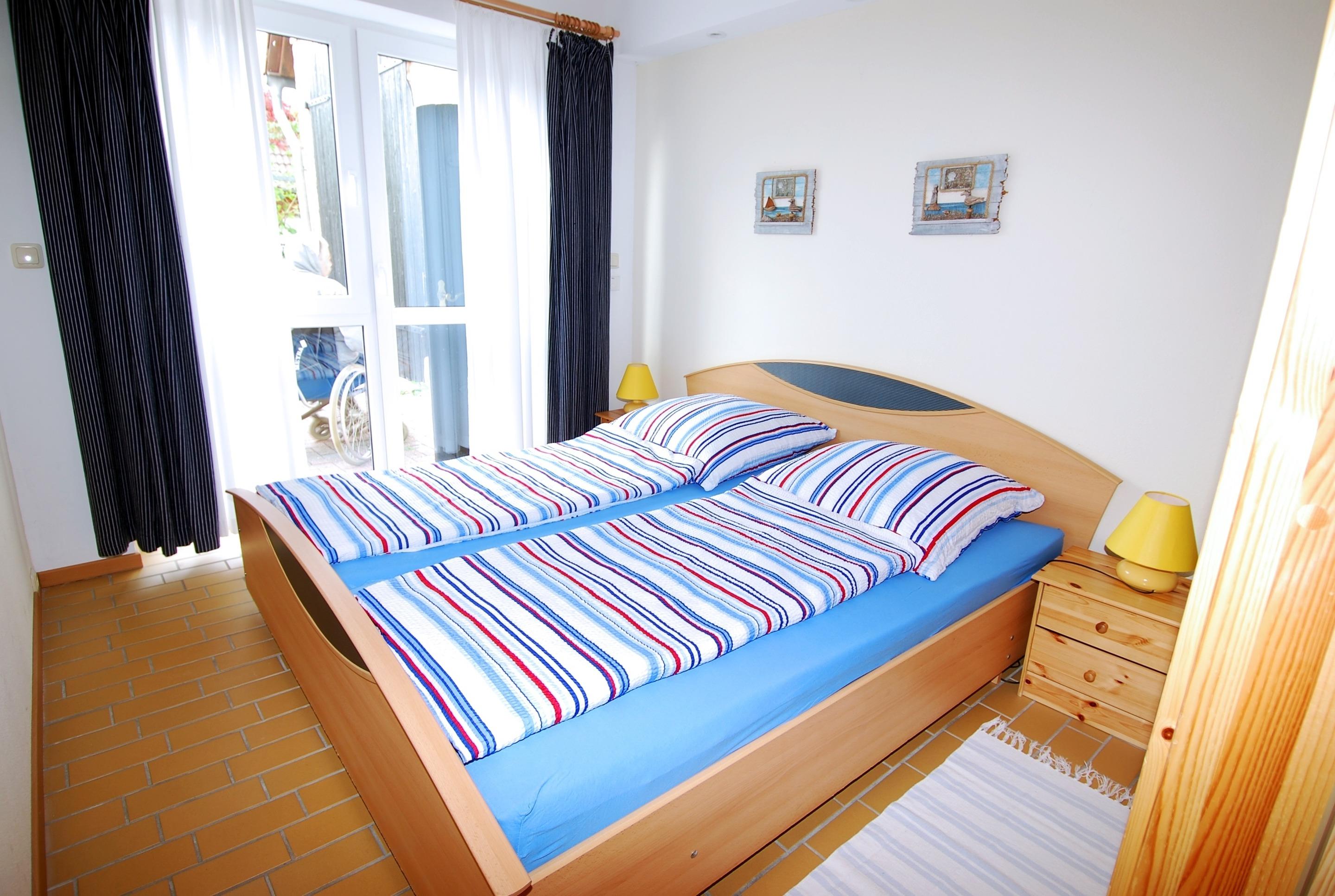 Die Wohnung verfügt über zwei separate Schlafzimmer, die Ihnen angenehme Rückzugsmöglichkeiten nach einem erlebnisreichen Urlaubstag bieten. Beide Schlafzimmer sind mit komfortablen Doppelbetten (180 x 200 cm) ausgestattet. Ein Schlafzimmer verfügt über einen Kleiderschrank, das andere über eine Kommode, sodass ausreichend Stauraum für Ihr Gepäck vorhanden ist. Jalousien zur Verdunklung sorgen für erholsame Nächte und angenehme Ruhe.