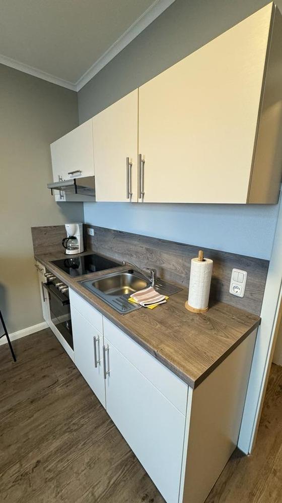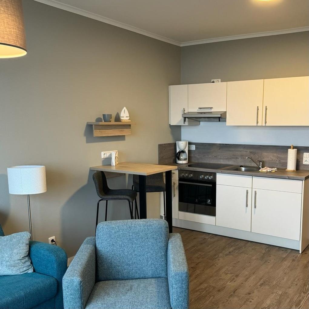 Die Küchenzeile ist funktional in den Wohnraum integriert und ermöglicht eine unkomplizierte Selbstversorgung während Ihres Aufenthaltes. So können Sie Ihre Mahlzeiten flexibel und unabhängig gestalten.
