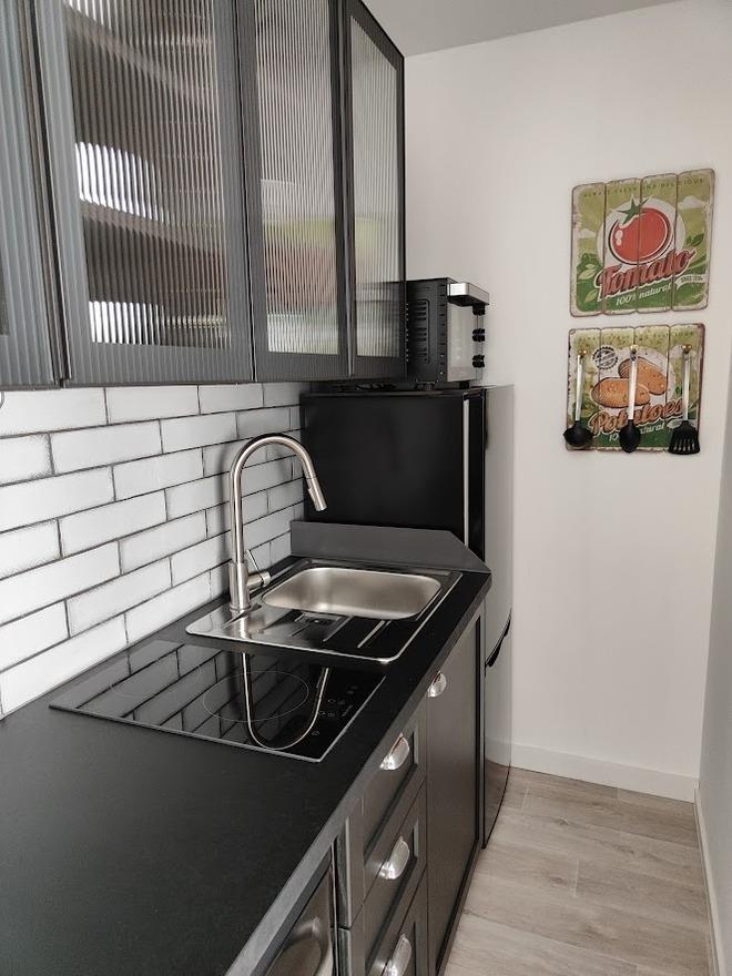 Die moderne Küchenzeile ist vollständig ausgestattet und lässt keine Wünsche offen. Hier finden Sie alles, was Sie für die Selbstversorgung benötigen – perfekt, um Ihre Lieblingsgerichte auch im Urlaub zuzubereiten. Der angrenzende Essbereich bietet ausreichend Platz für gemeinsame Mahlzeiten.