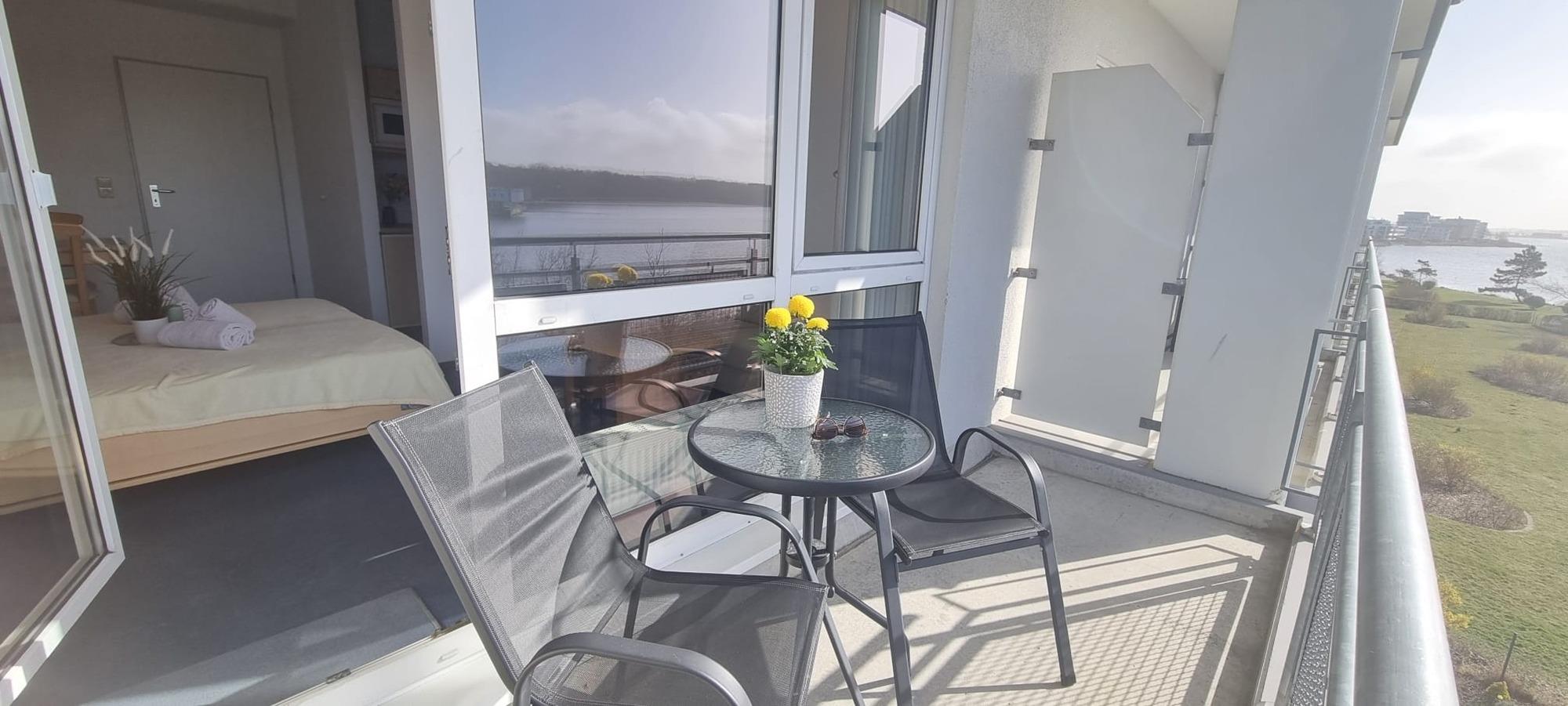 Studio mit Balkon & Blick auf den Binnensee – kompakt, gemütlich & gut gelegen