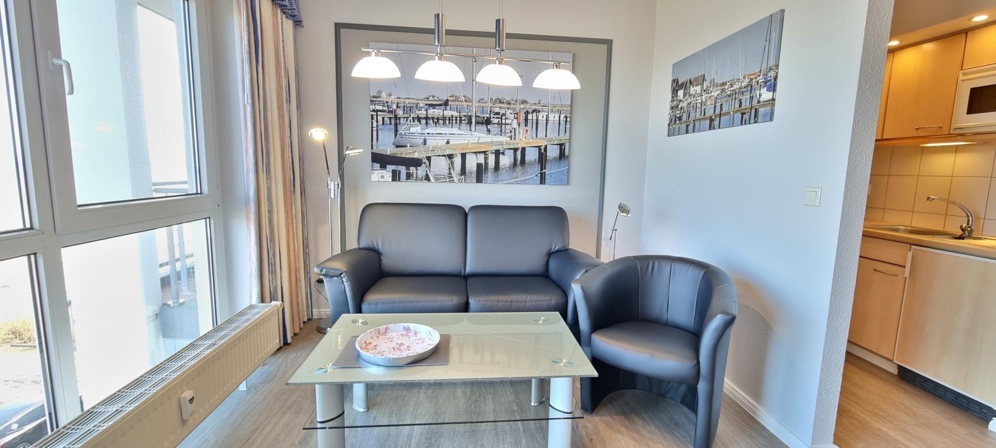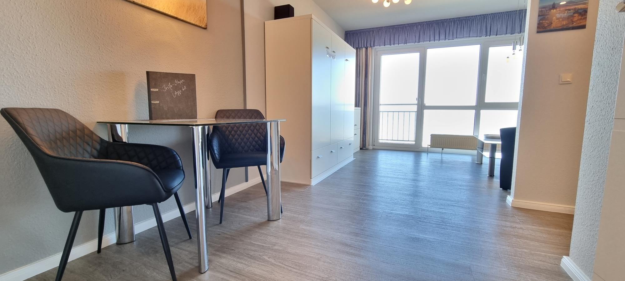 Genießen Sie Ihren Ostseeurlaub im stilvoll renovierten Studio 68 "Strandverbliev" in der Ostseeresidenz auf dem Steinwarder in Heiligenhafen. Das ca. 37 m² große 1-Zimmer-Appartement liegt auf der 4. Ebene und überzeugt mit einer herrlichen Aussicht auf die Ostsee – direkt vom Sofa aus!