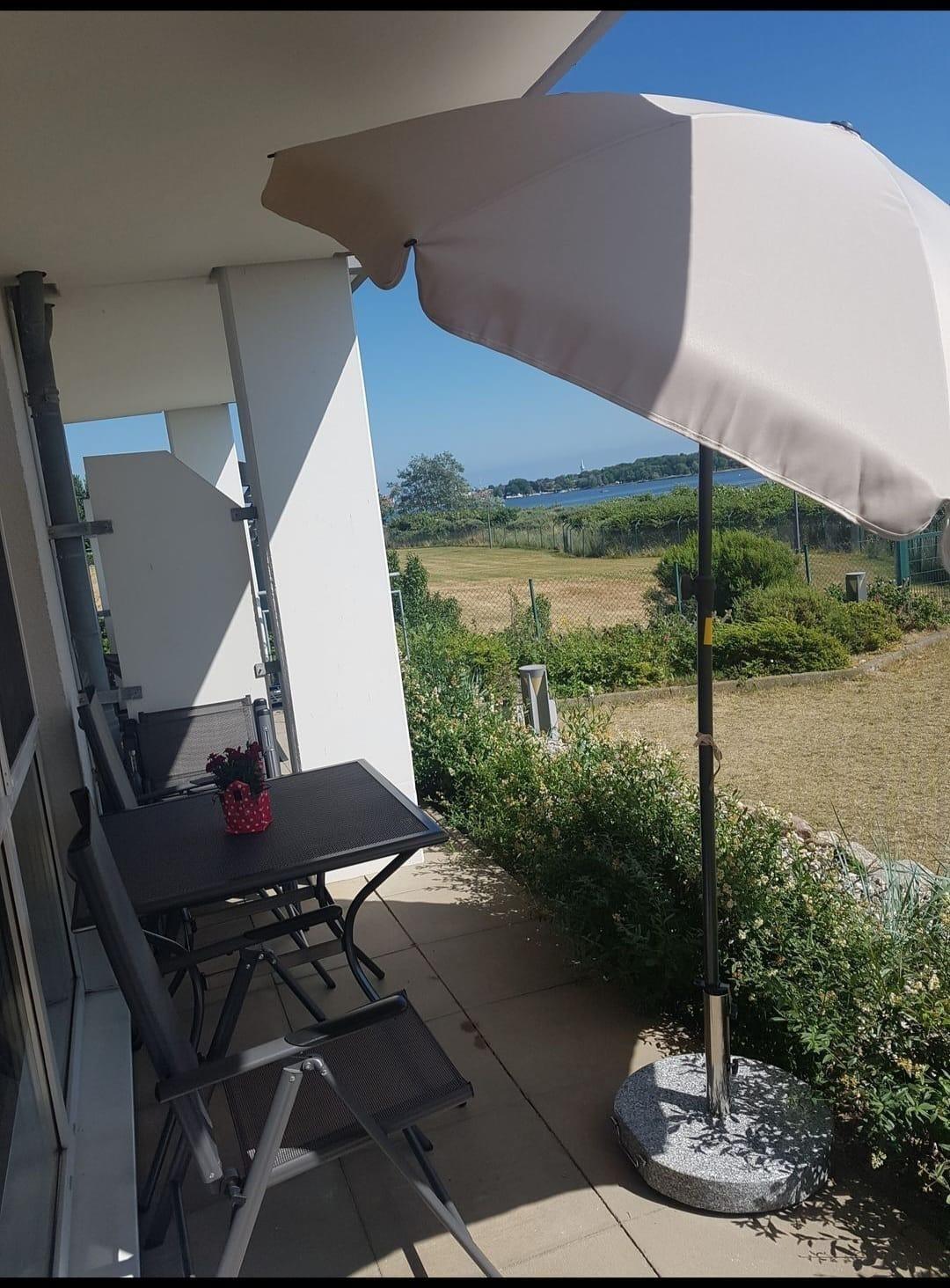 Genießen Sie die möblierte Terrasse mit freiem Blick auf den Binnensee. Hier können Sie entspannen, die Abendsonne genießen oder einfach die Natur beobachten. Hunde sind nach Anmeldung willkommen, sodass die ganze Familie – inklusive Vierbeiner – den Urlaub genießen kann. Die Wohnung ist eine Nichtraucherwohnung und besonders familienfreundlich eingerichtet.