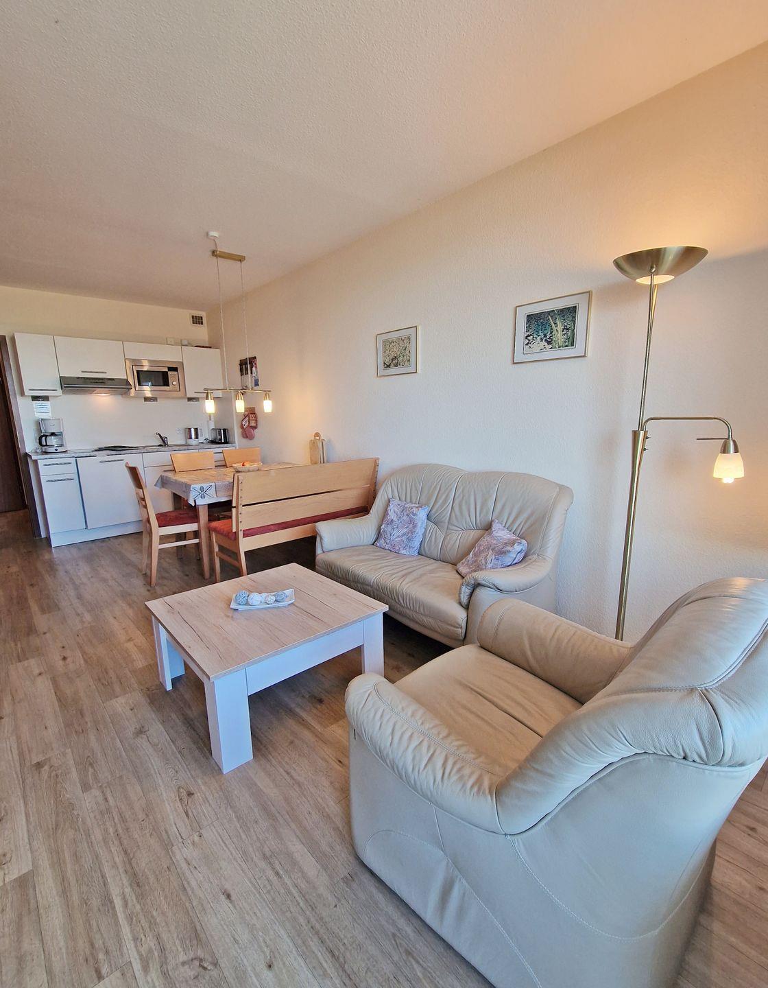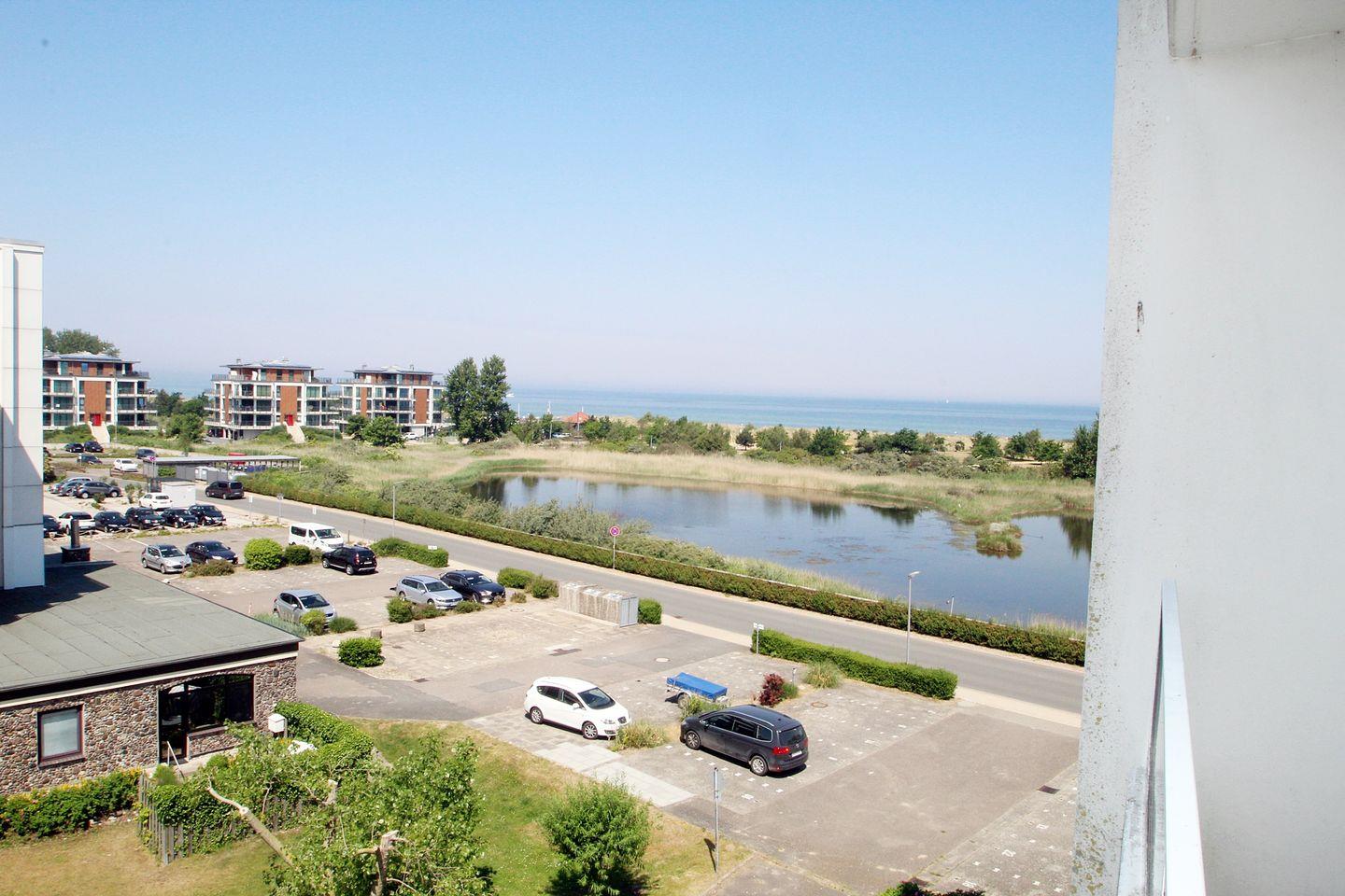 Gepflegte Ferienwohnung in der 4. Etage mit Balkon und Blick Blick über den Binnensee sowie seitlichem Ostseeblick.
