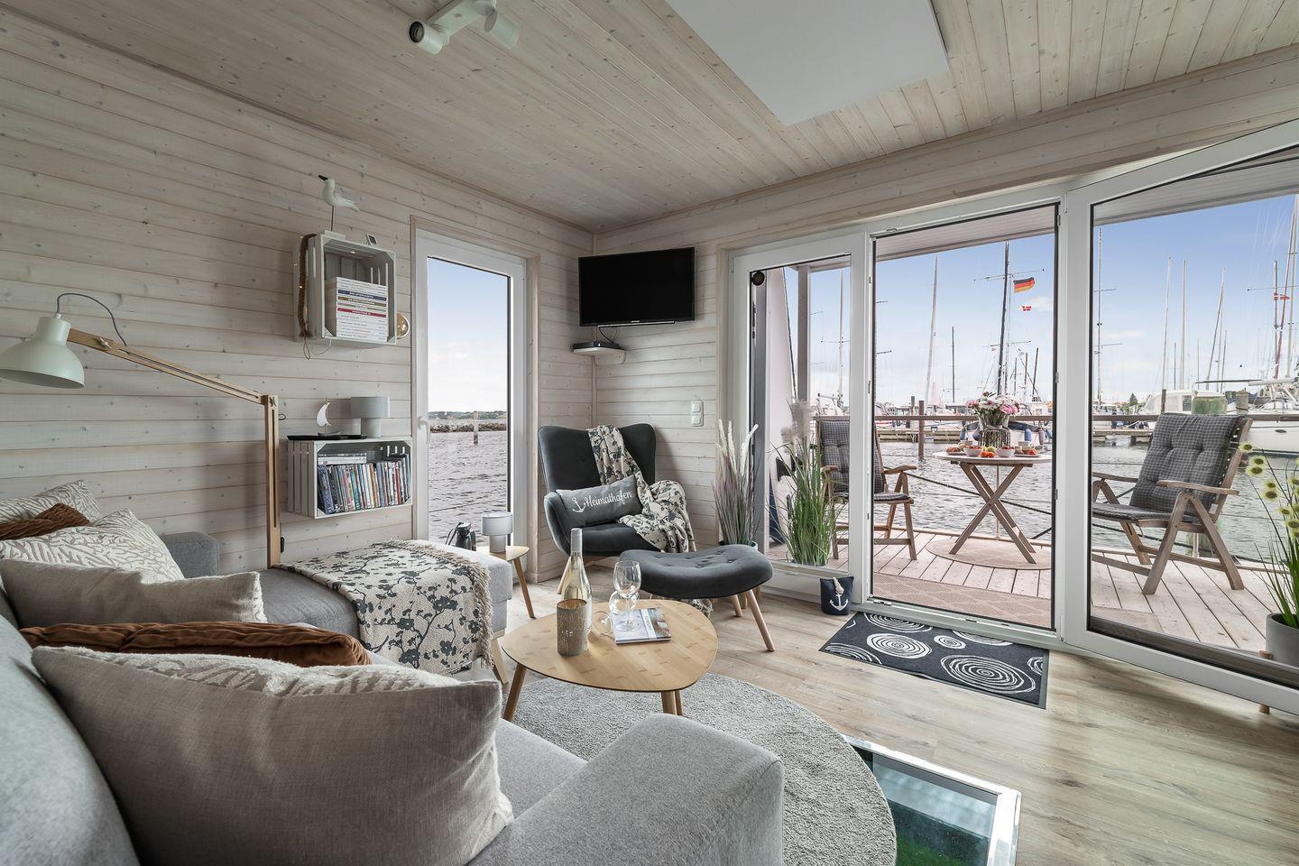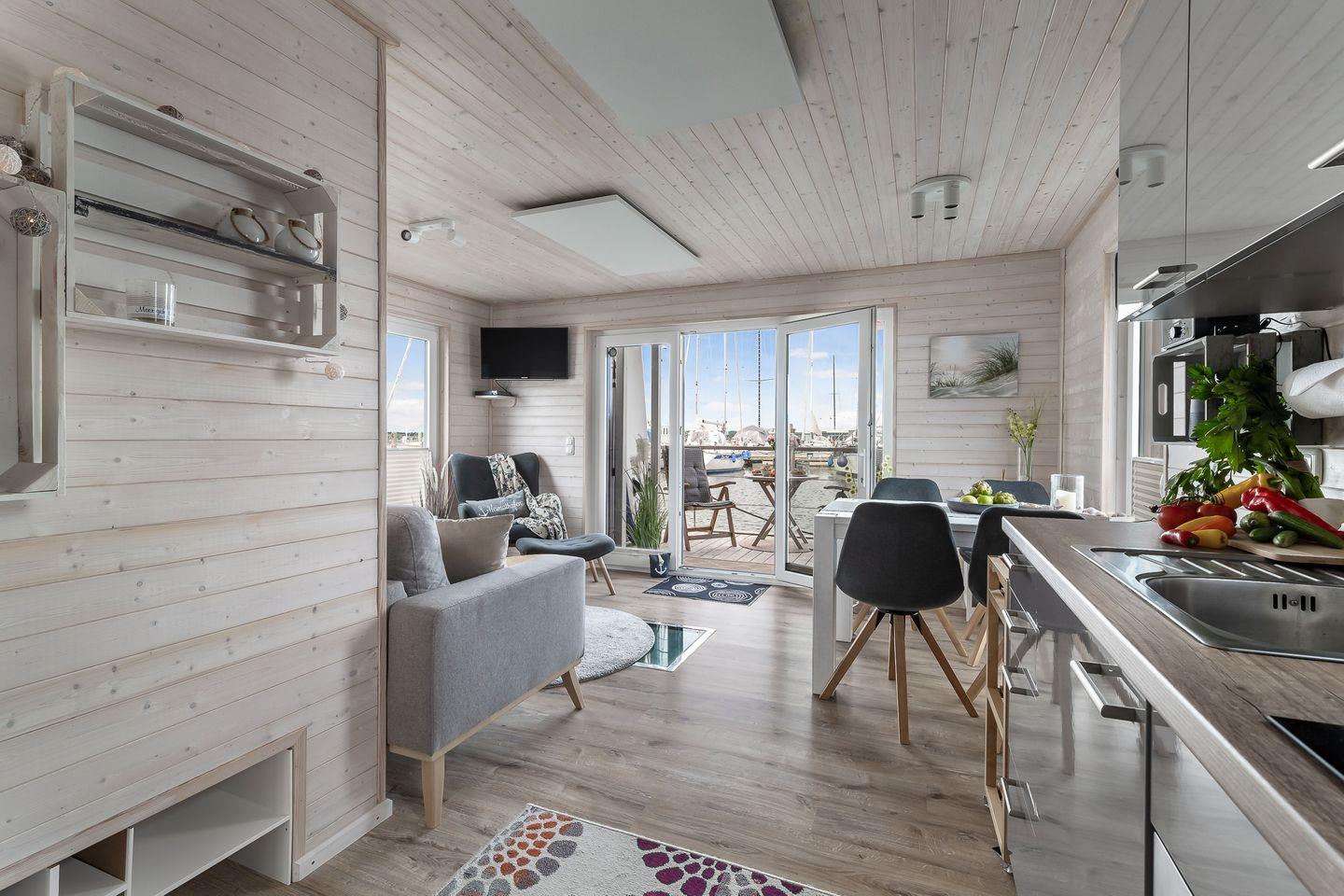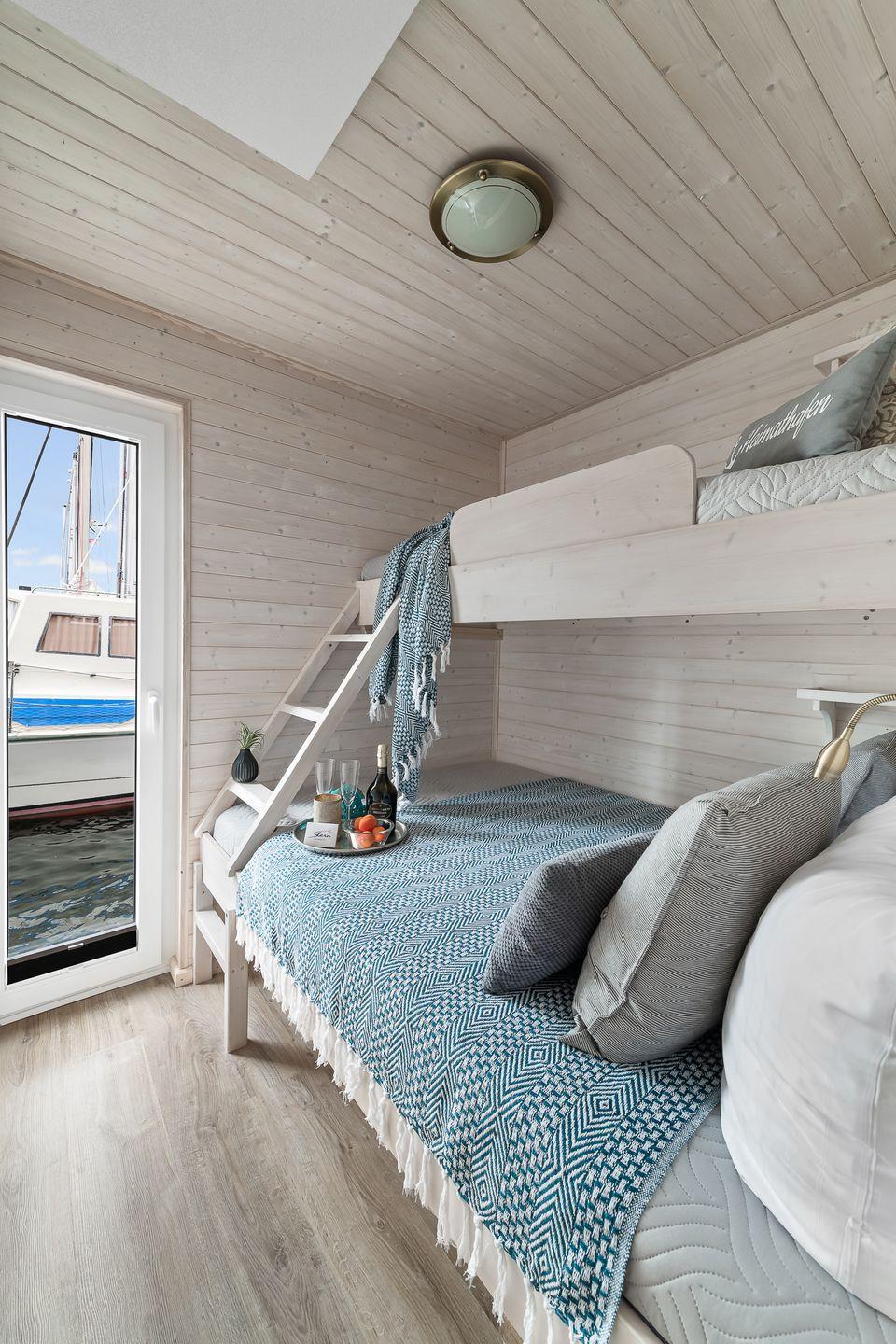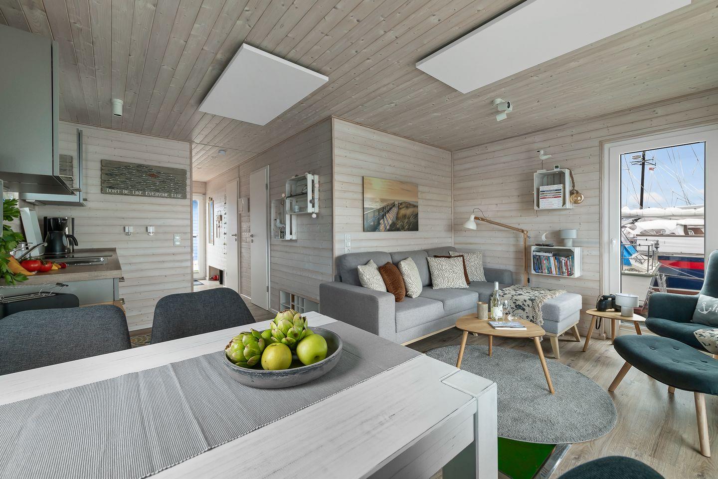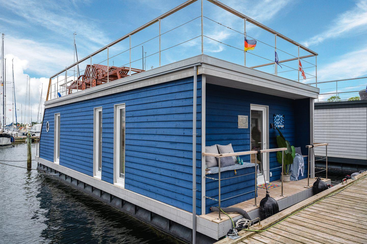 Das Hausboot Blabear in Heiligenhafen ist ein magischer Rückzugsort auf dem Wasser – ein Ort, an dem Ruhe.