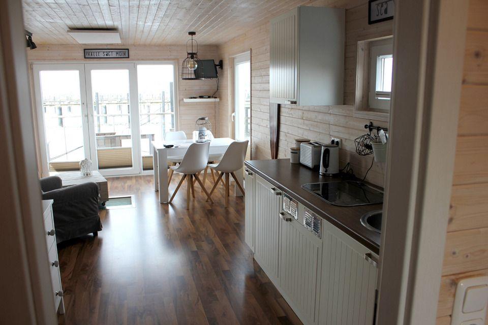 Hausboot KOJE KALLE liegt im Tau mitten im Yachthafen Heiligenhafen und bietet so viel derbe Coolness.