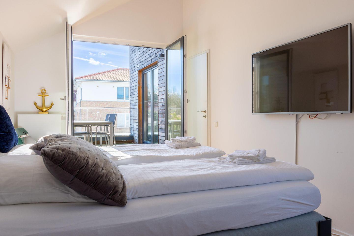 80m zum Hafen & 850m zum Strand - Moderne Ferienwohnung für 4 Personen mit sonnigem Balkon, Privatparkplatz & zwei Schlafzimmern